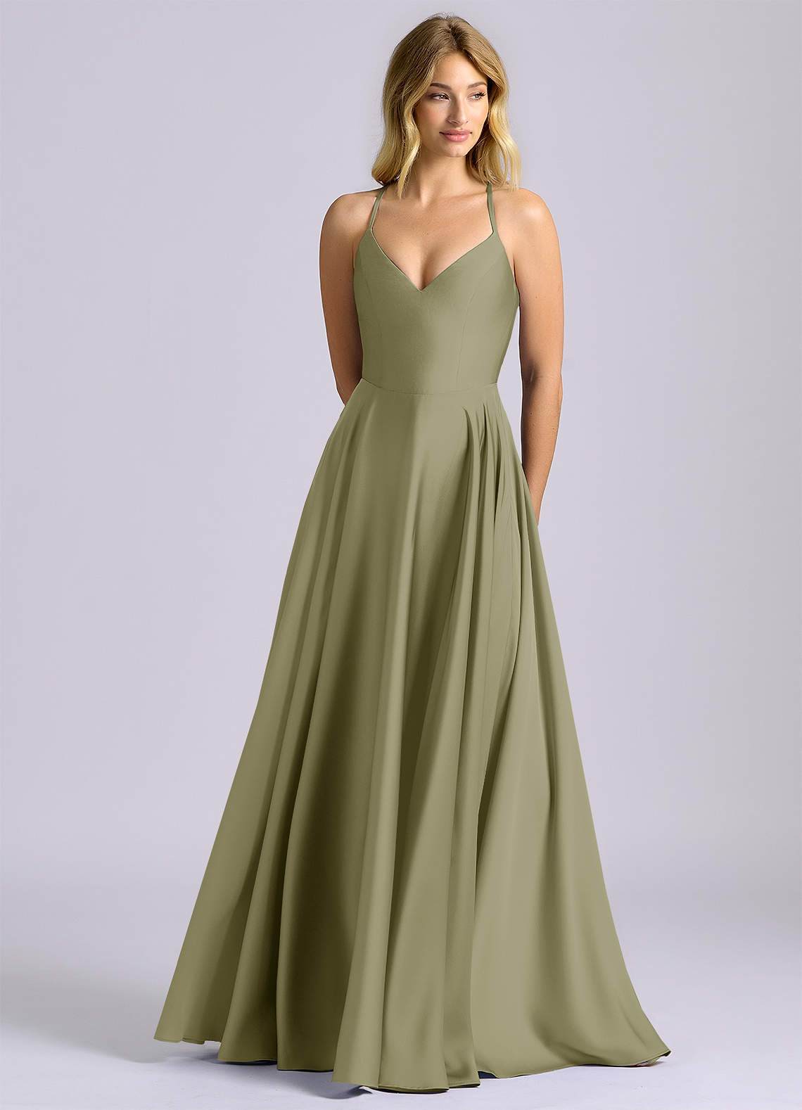 Pistachio A-Line Stretch Satin Dress