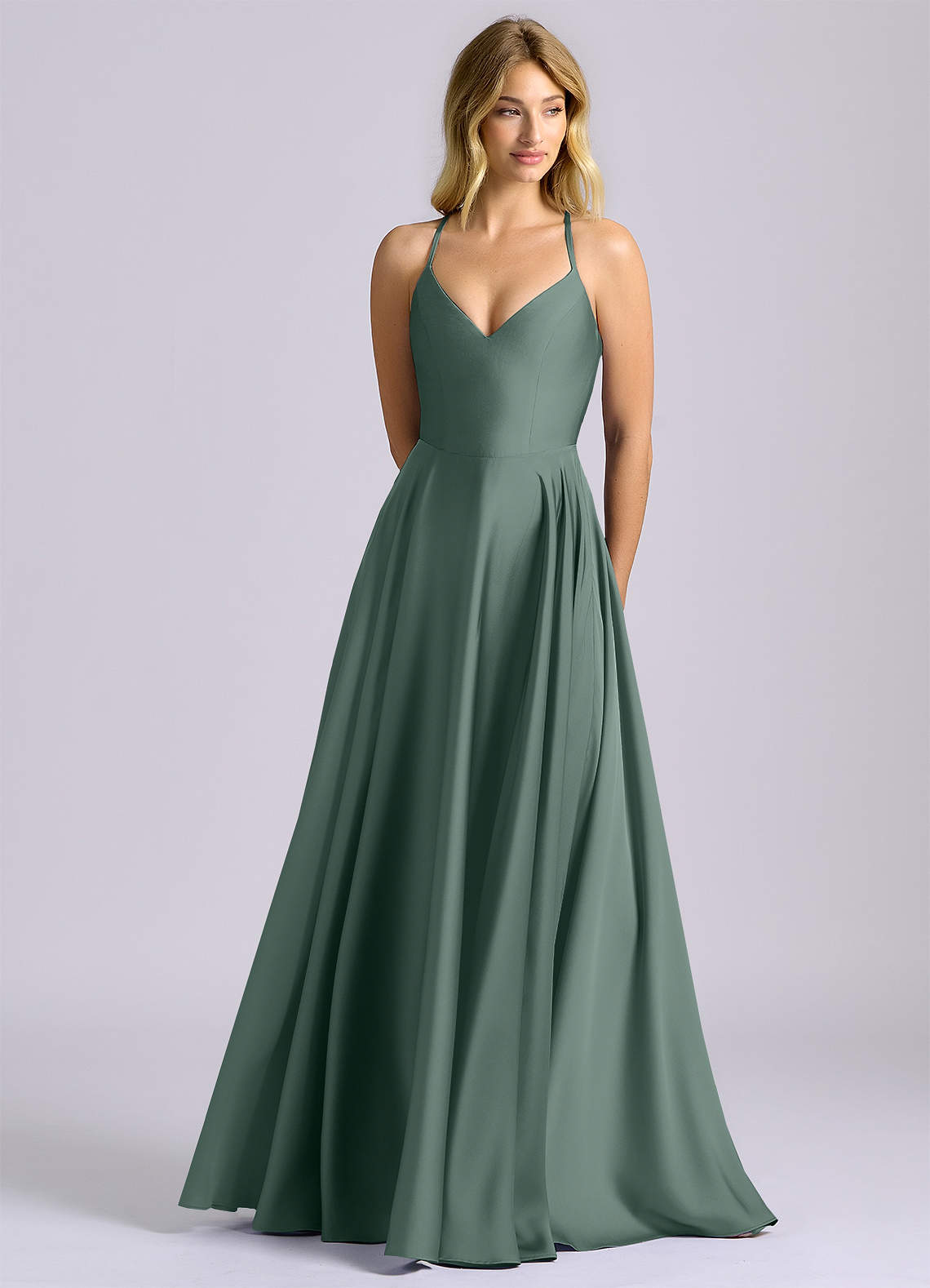 Sea Moss A-Line Stretch Satin Dress