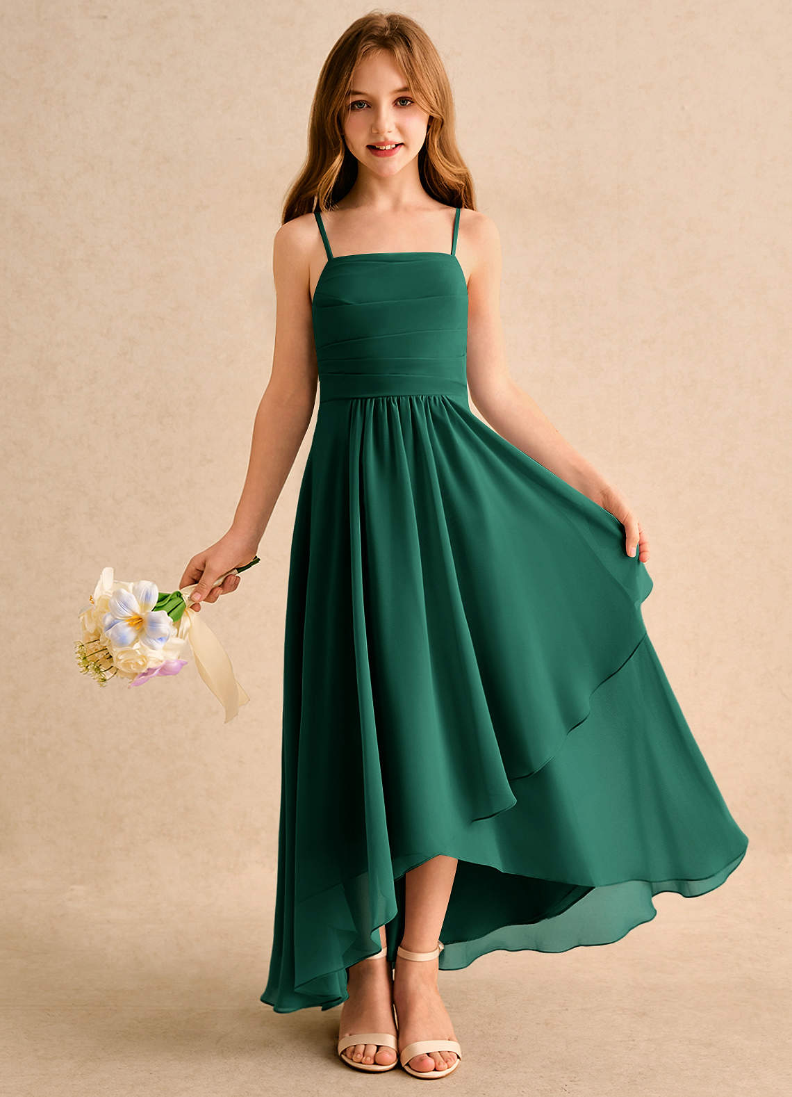 Emerald A-Line Pleated Chiffon Dress
