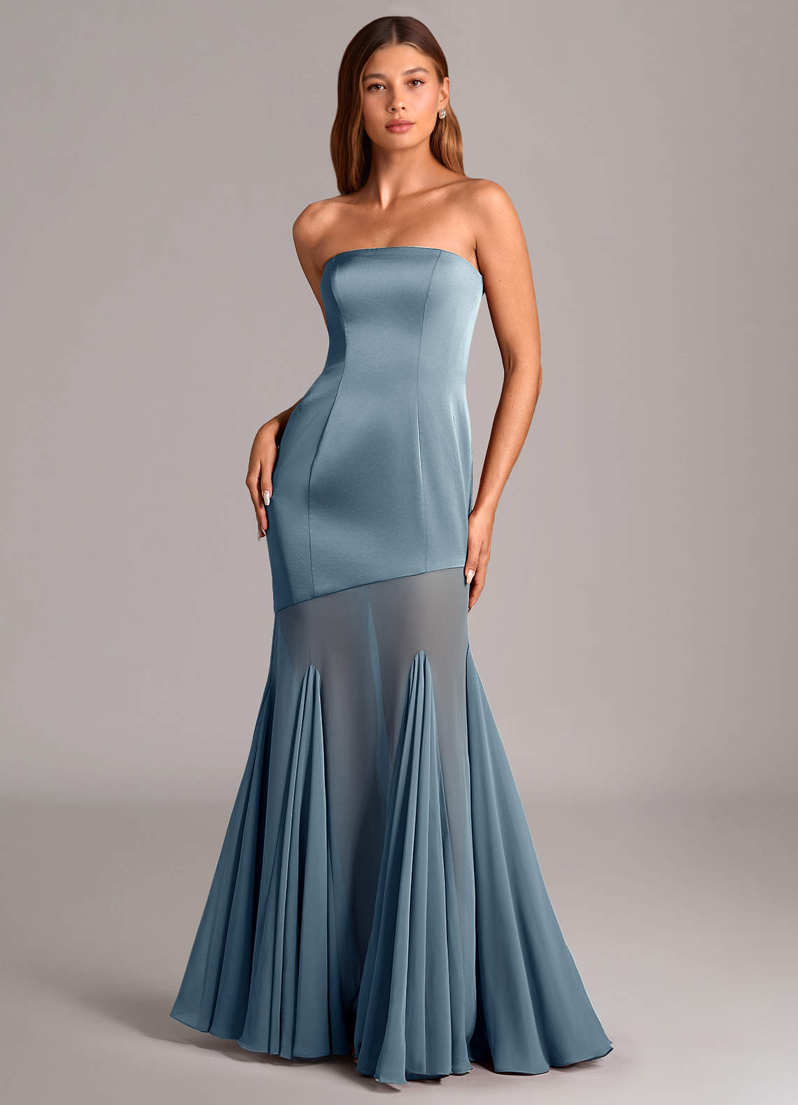 Dusty Blue Mermaid Strapless Chiffon Convertible Dress