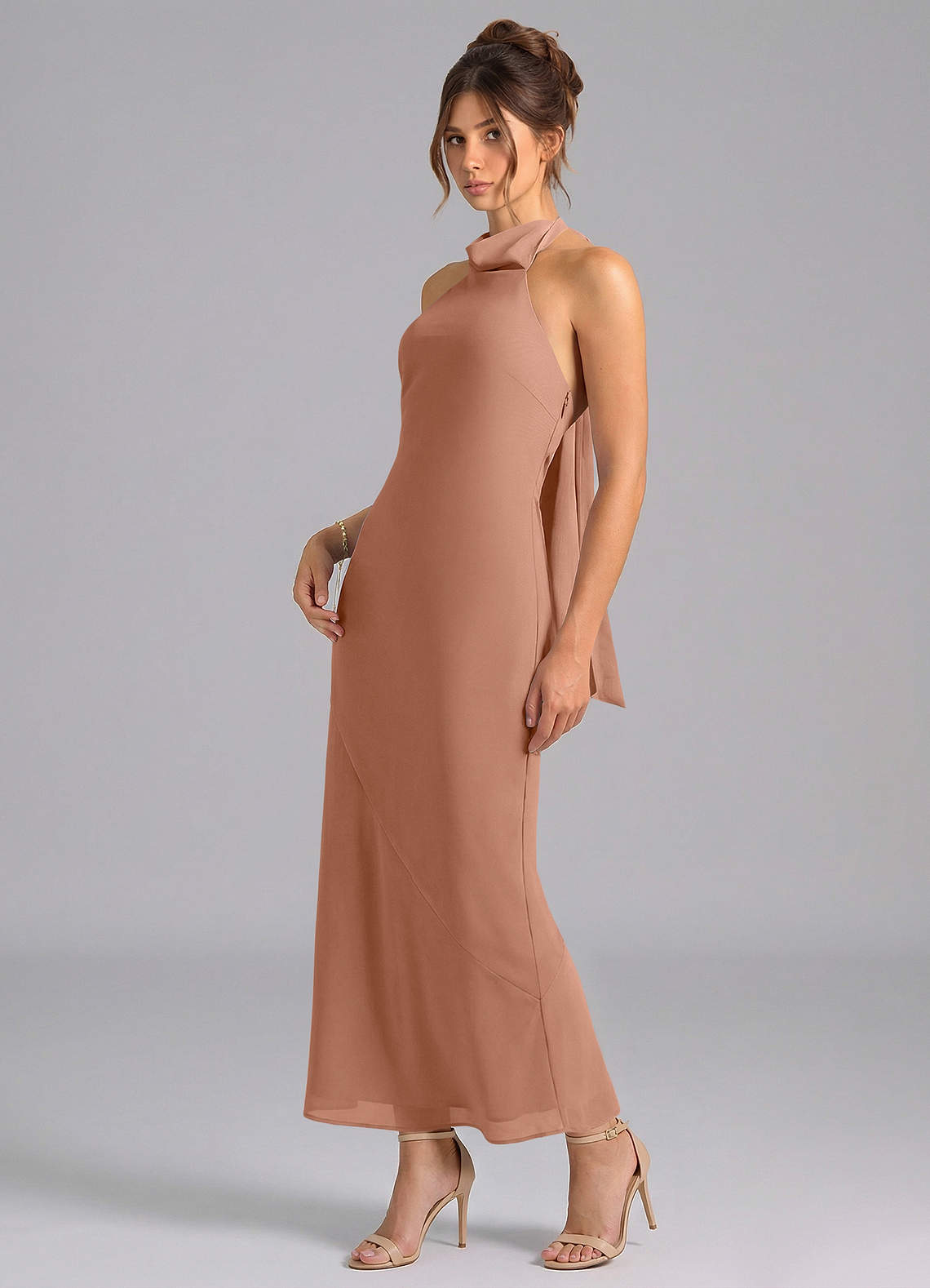 Bronzer Mermaid High Neck Chiffon Dress