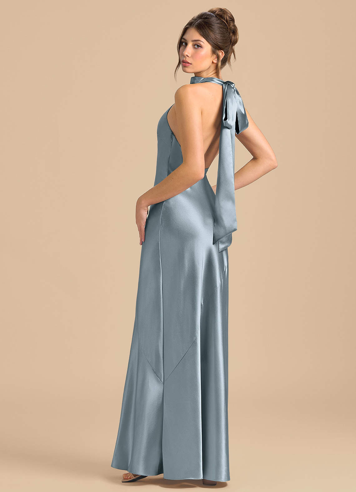 Dusty Blue Sheath High Neck Metallic Satin Dress