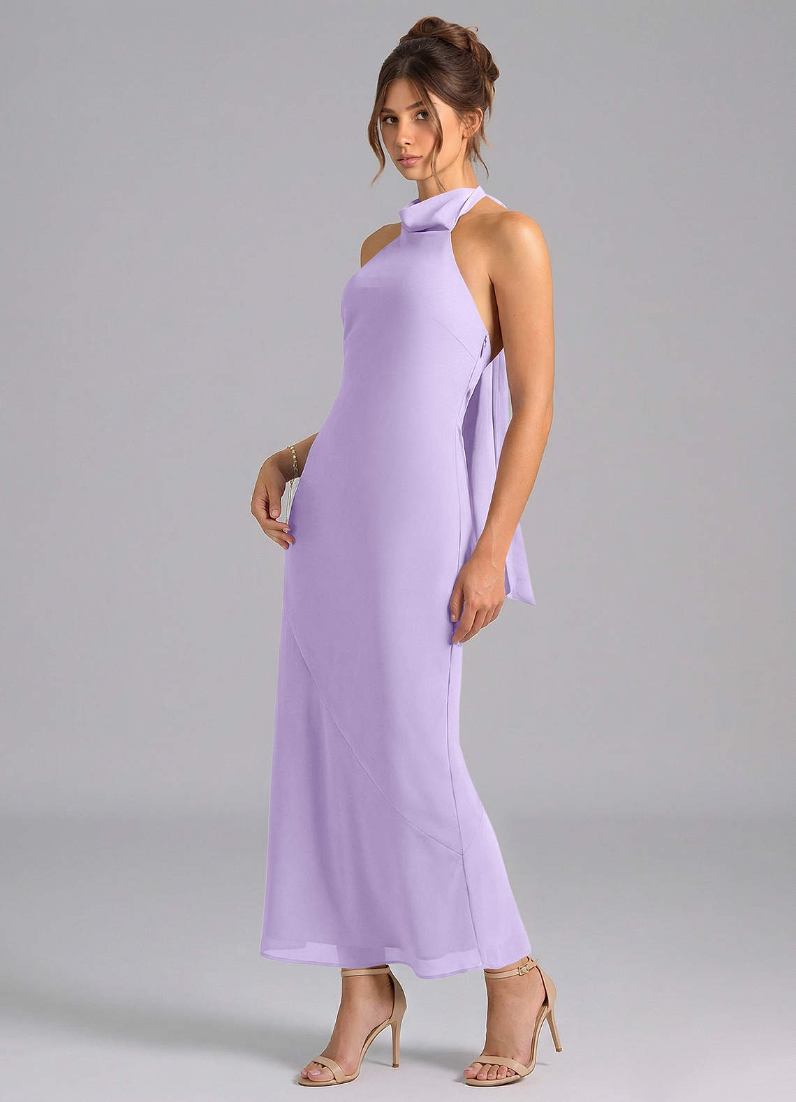 Lilac Mermaid High Neck Chiffon Dress