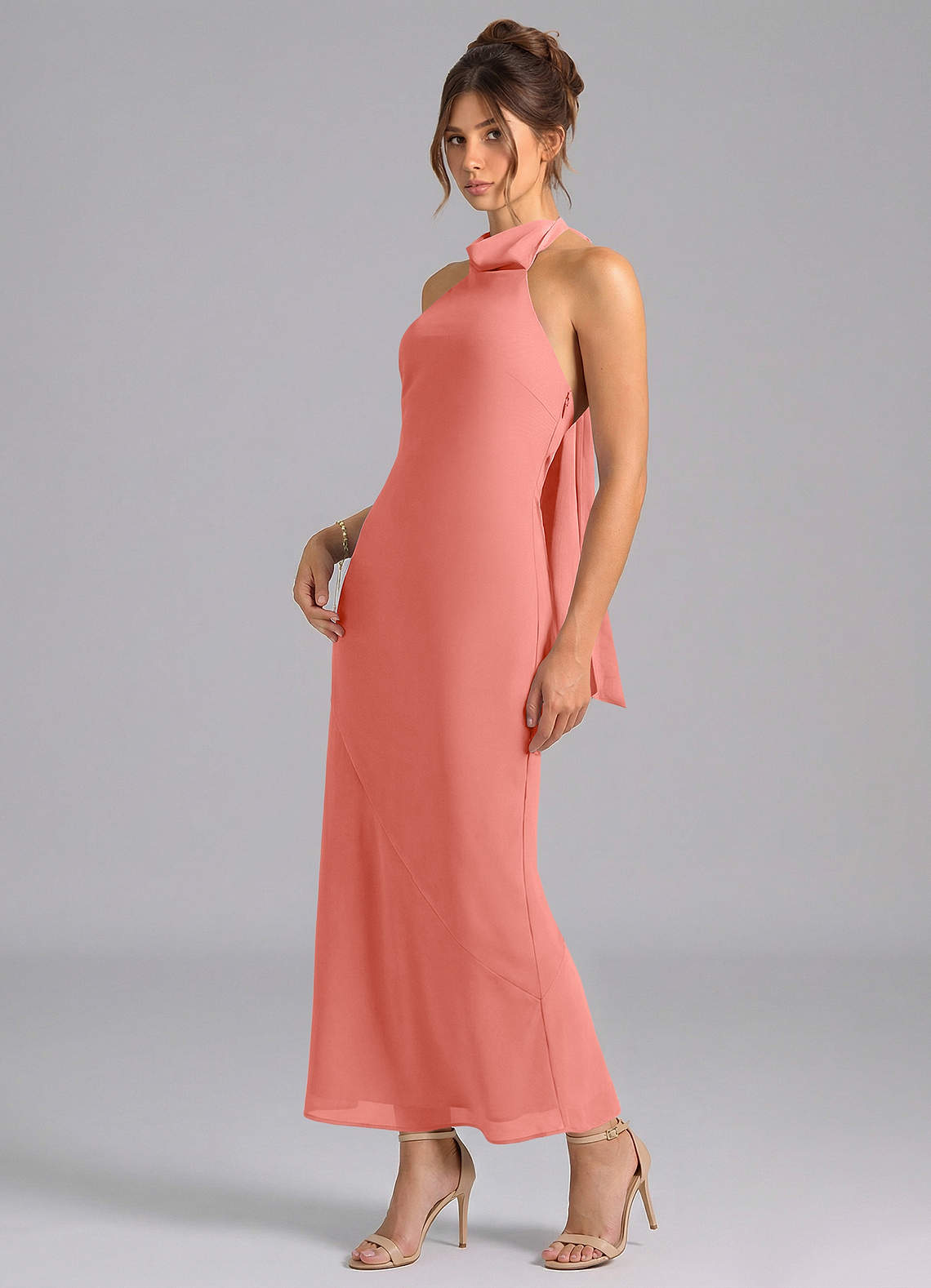 Salmon Pink Mermaid High Neck Chiffon Dress