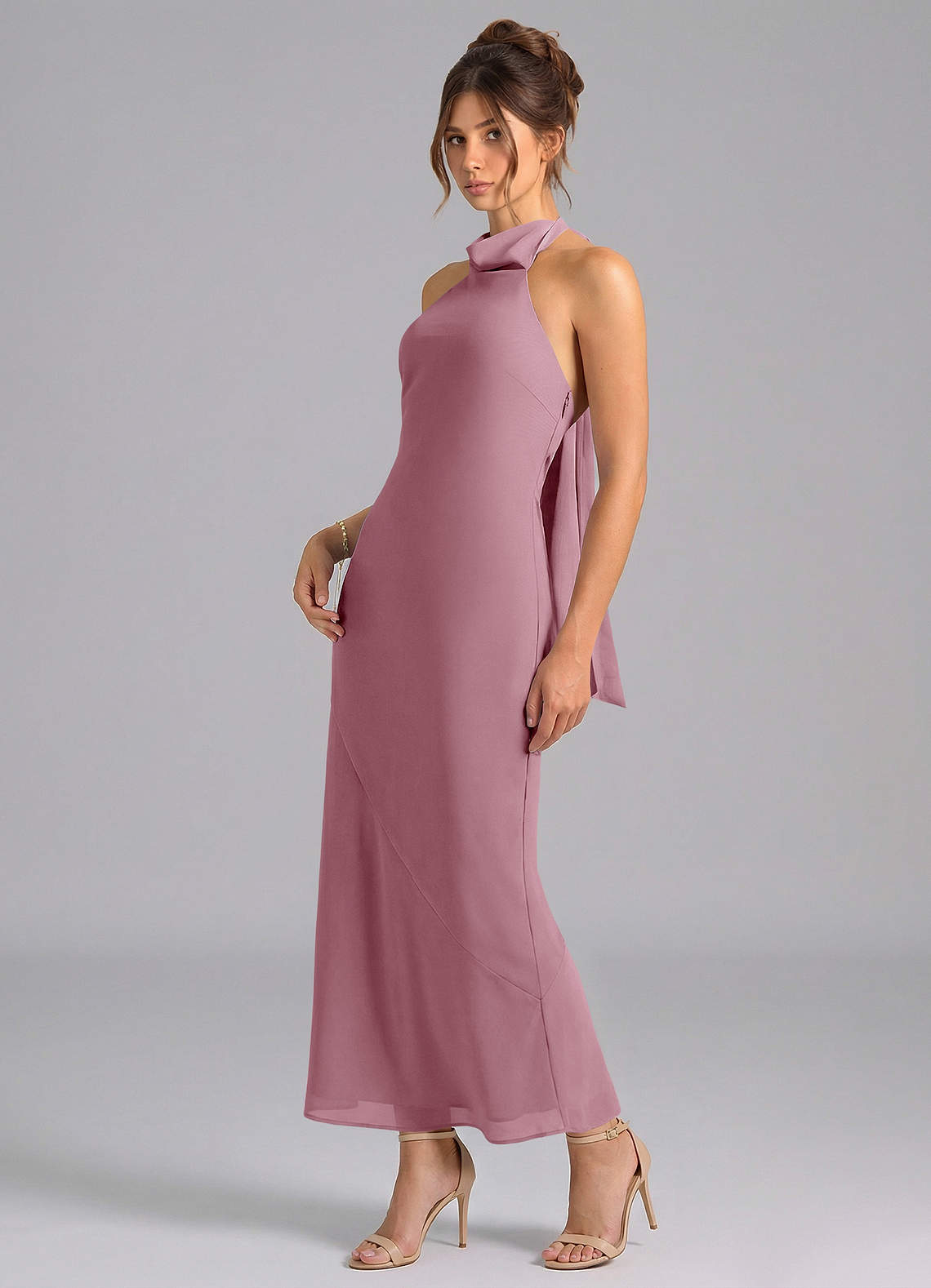 Vintage Mauve Mermaid High Neck Chiffon Dress