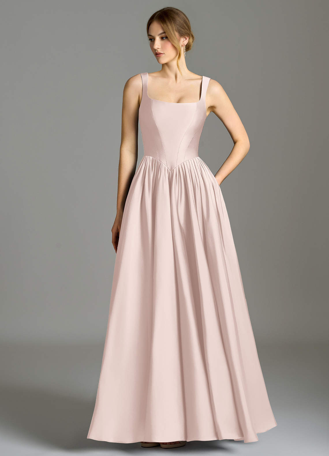 Blushing Pink A-Line Pleated Stretch Satin Dress