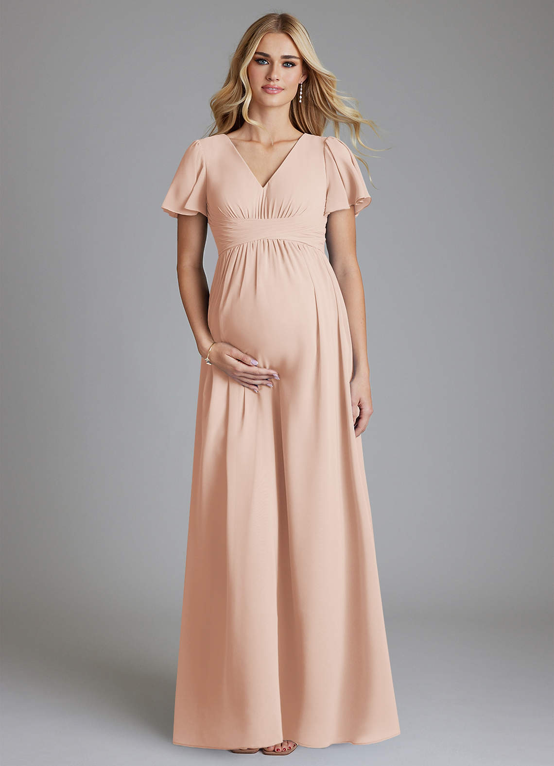 A-Line V-Neck Ruched Chiffon Floor-Length Dress English Rose
