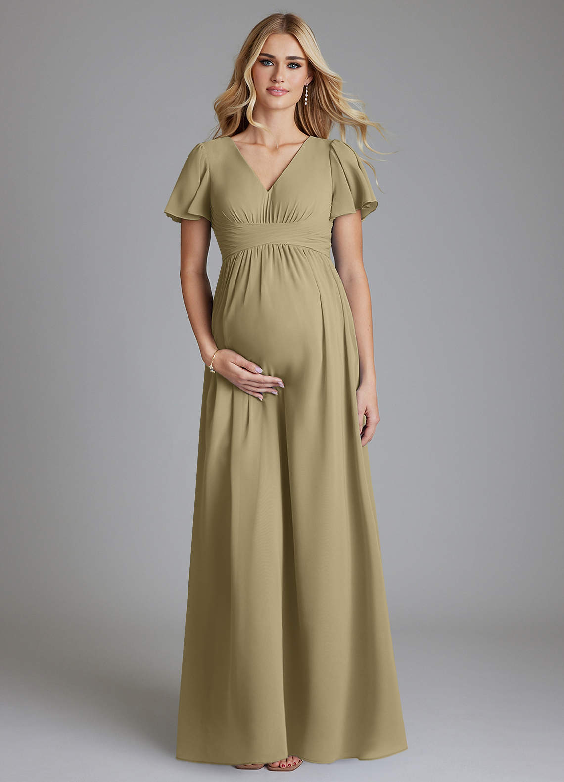 Azazie Verna Maternity Bridesmaid Dresses A-Line V-Neck Ruched Chiffon Floor-Length Dress image1