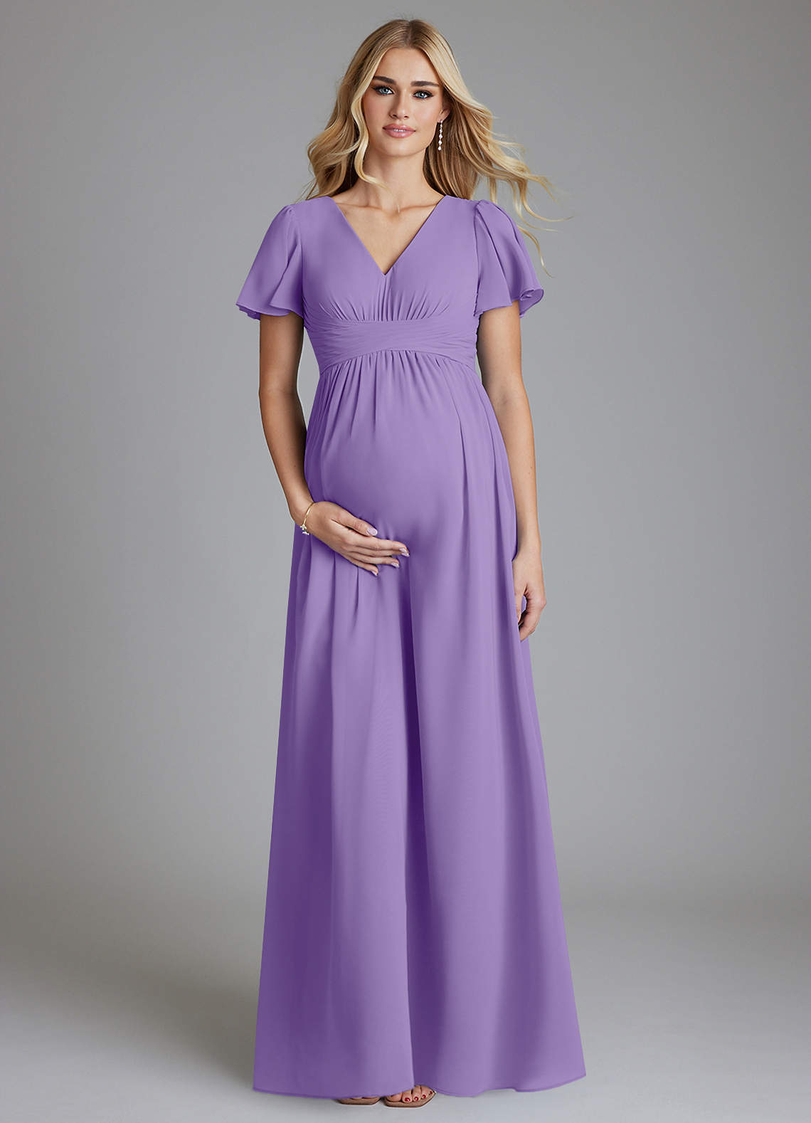 A-Line V-Neck Ruched Chiffon Floor-Length Dress Tahiti