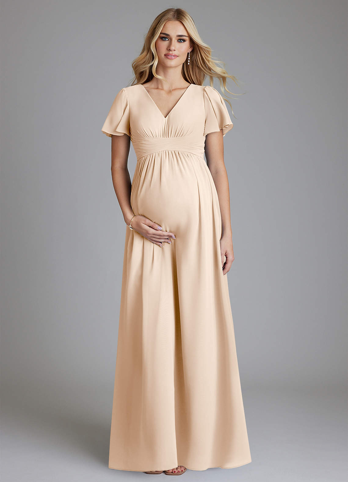 A-Line V-Neck Ruched Chiffon Floor-Length Dress White Alabaster