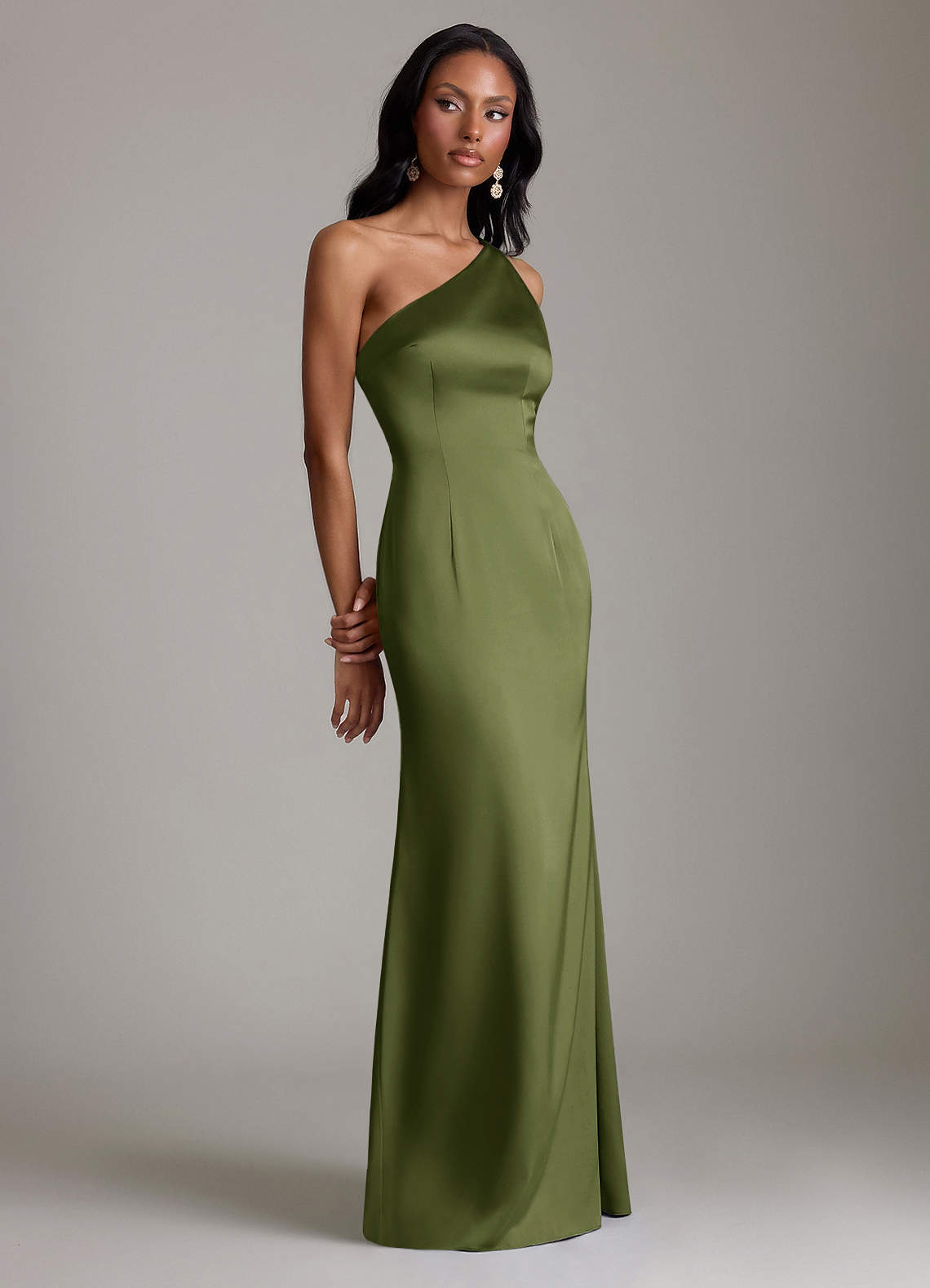 Olive Mermaid One Shoulder Stretch Satin Dress