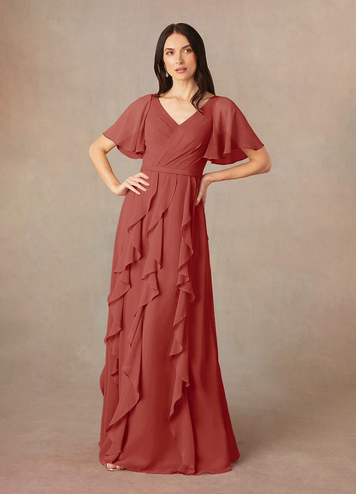 Terracotta A-Line V-Neck Chiffon Dress