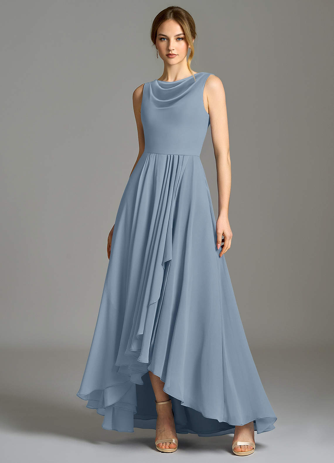 Dusty Blue A-Line Pleated Chiffon Dress