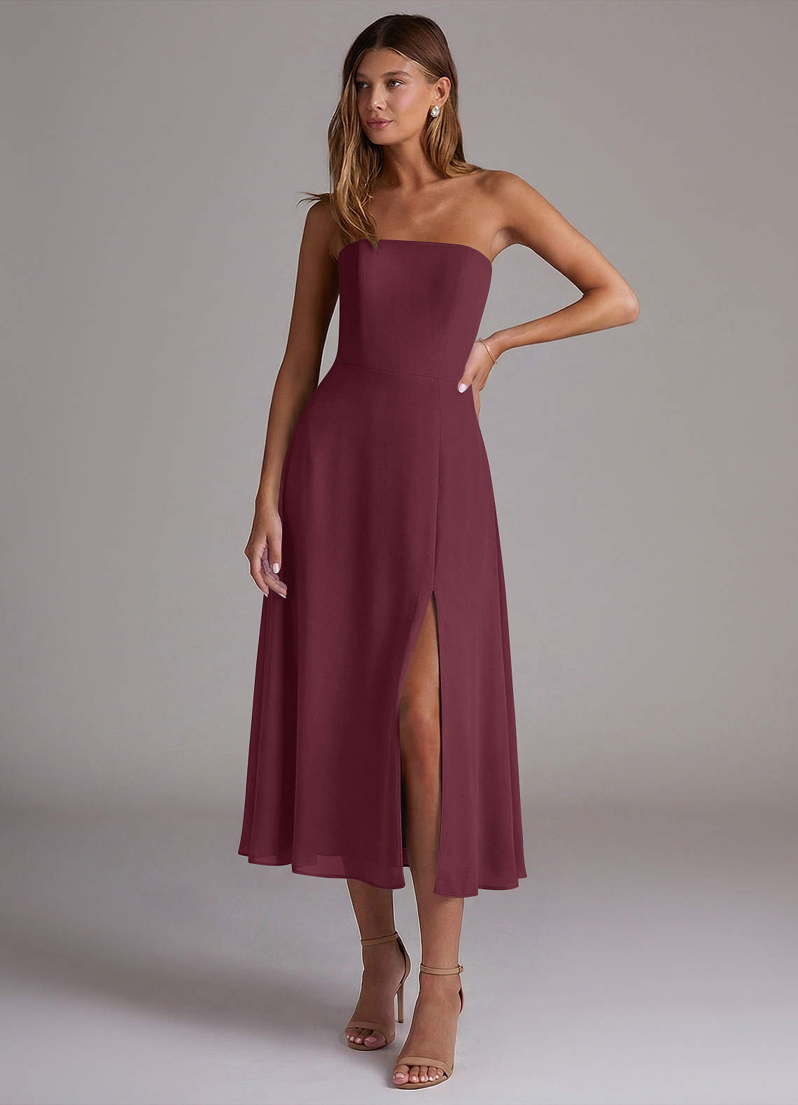 Cabernet A-Line Strapless Chiffon Dress