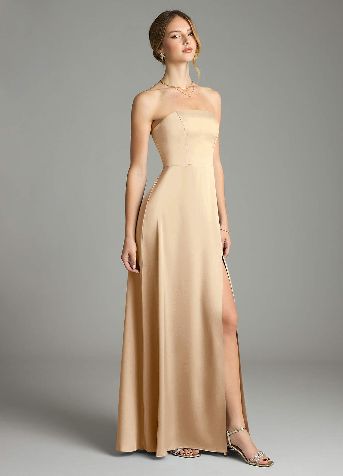 Champagne A-Line Strapless Stretch Satin Convertible Dress