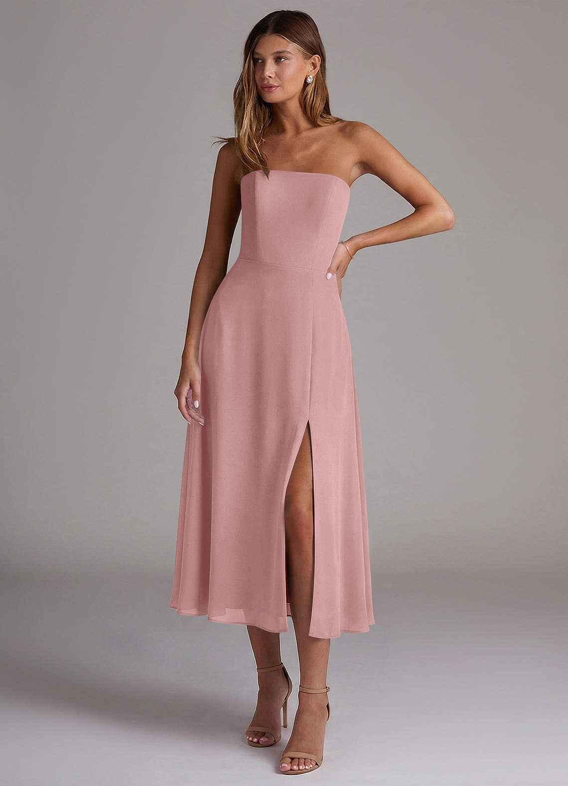 Dusty Rose A-Line Strapless Chiffon Dress