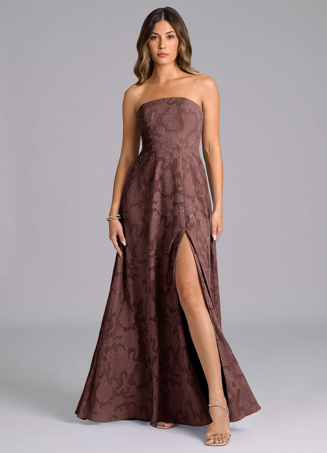 Espresso A-Line Strapless Floral Burnout Dress