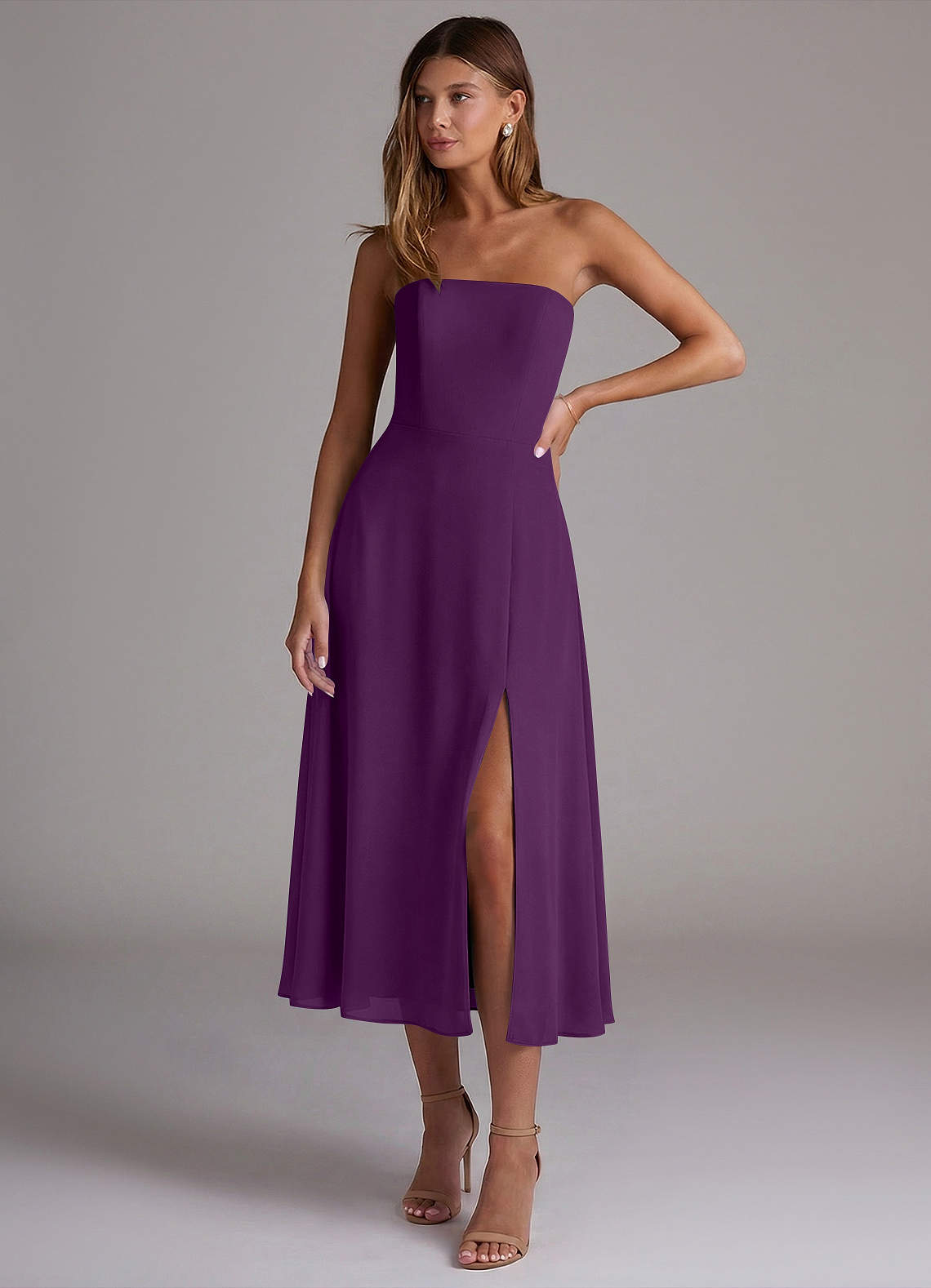 Grape A-Line Strapless Chiffon Dress
