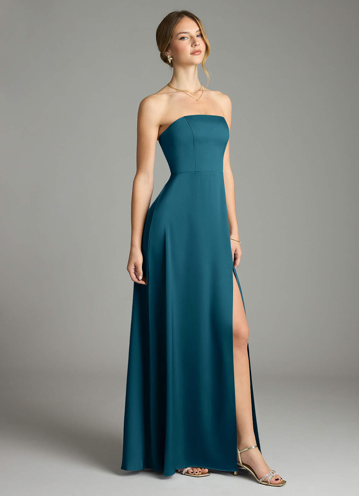 Ink Blue A-Line Strapless Stretch Satin Convertible Dress