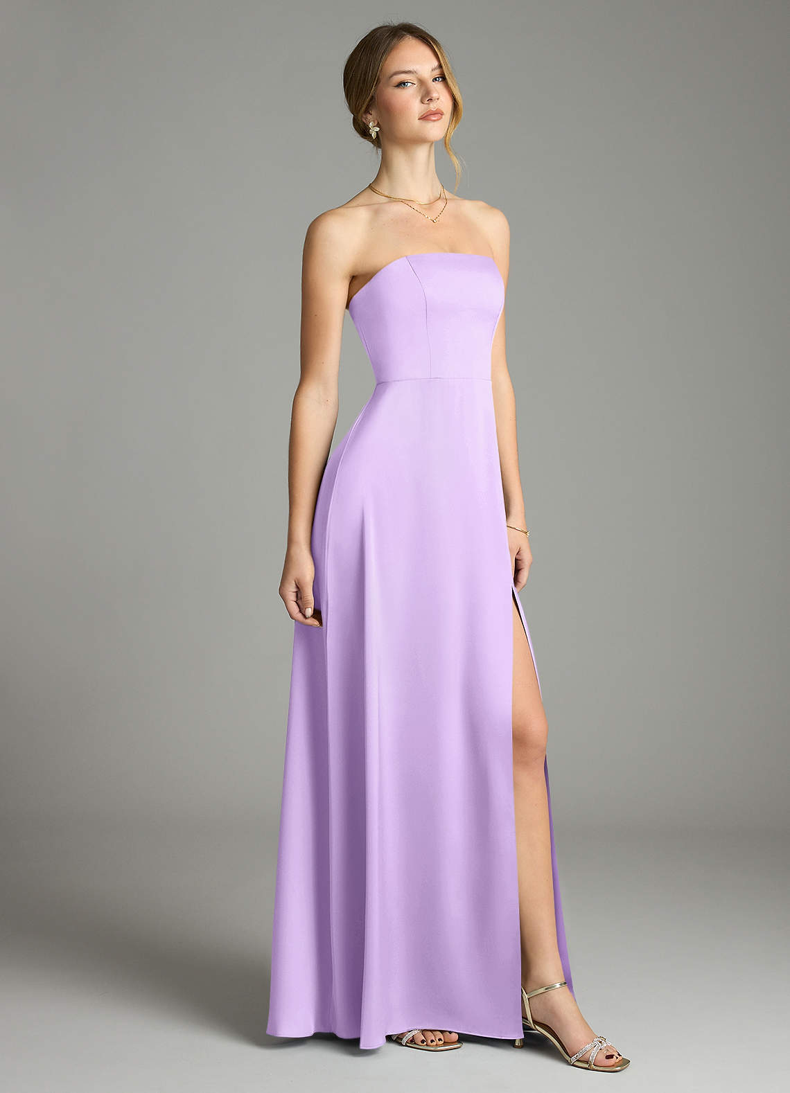 Lilac A-Line Strapless Stretch Satin Convertible Dress
