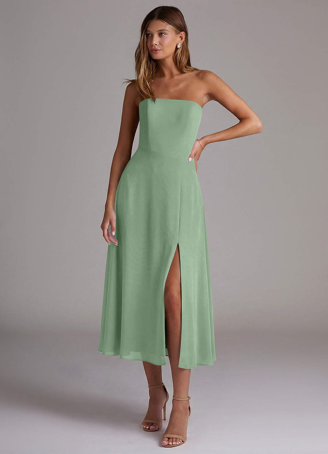 Matcha A-Line Strapless Chiffon Dress