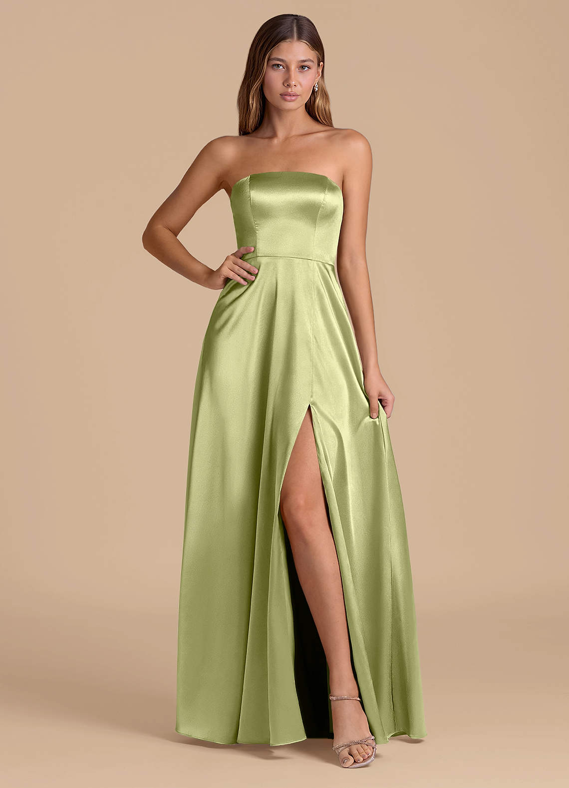 Pistachio A-Line Strapless Metallic Satin Dress