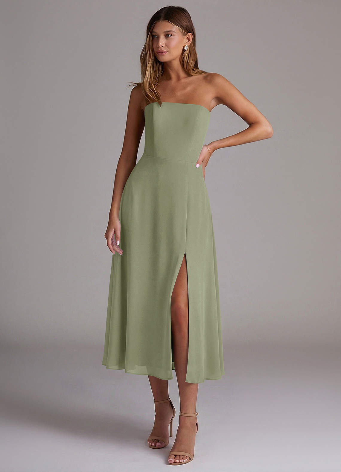 Pistachio A-Line Strapless Chiffon Dress