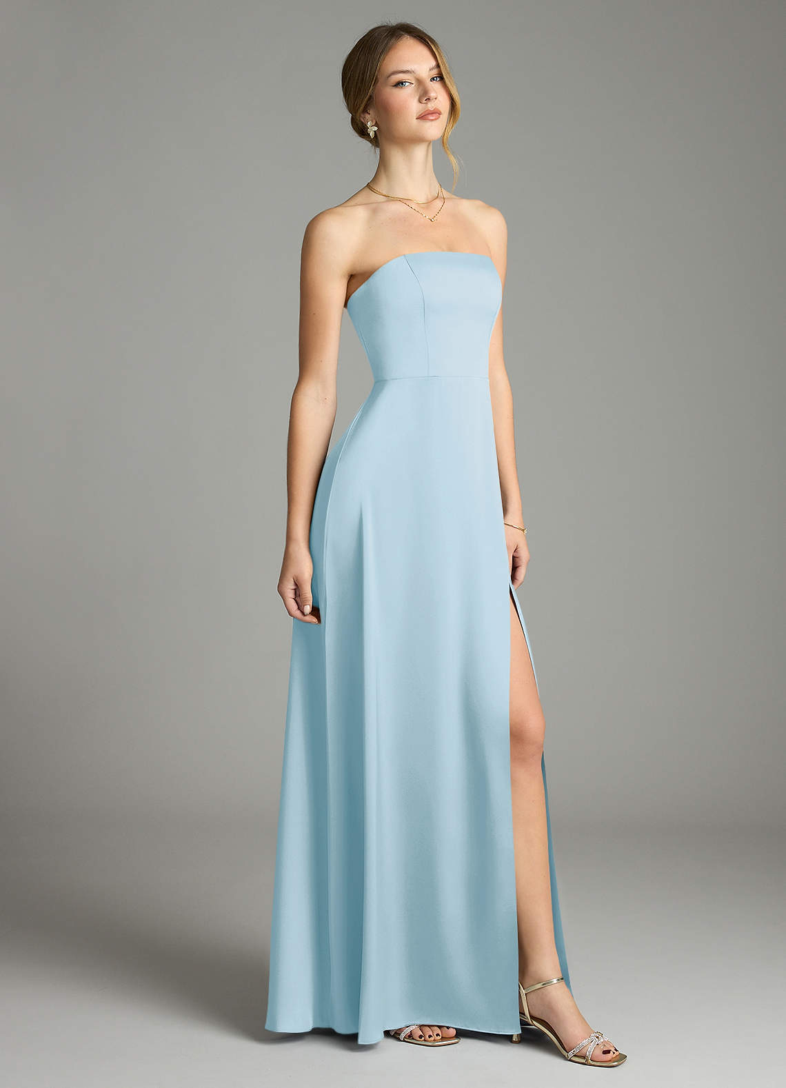 Sky Blue A-Line Strapless Stretch Satin Convertible Dress