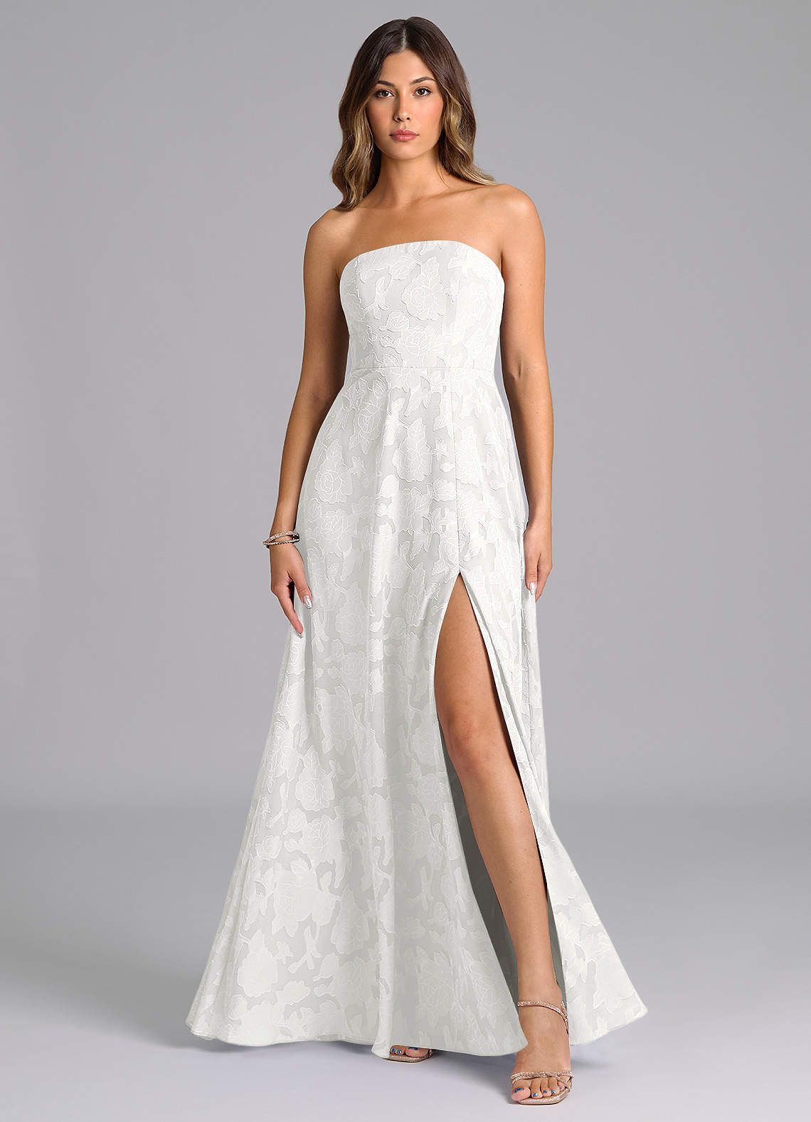 White A-Line Strapless Floral Burnout Dress