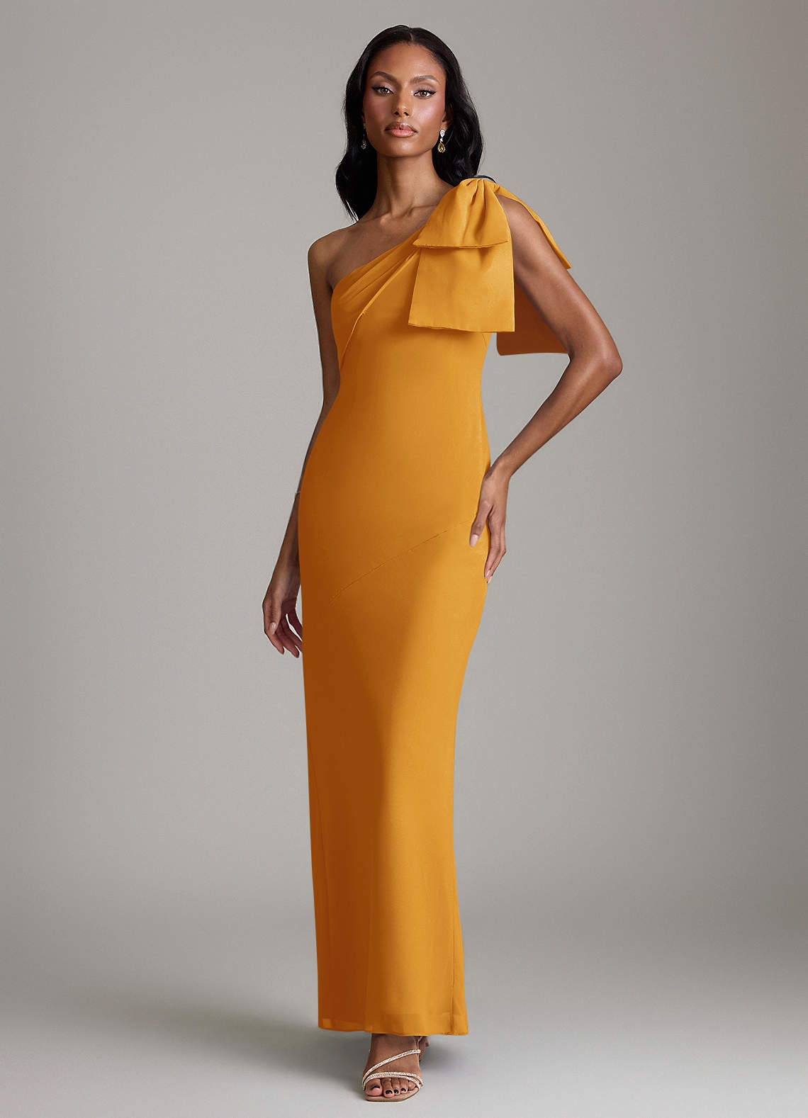 Butterscotch Mermaid One Shoulder Chiffon Dress