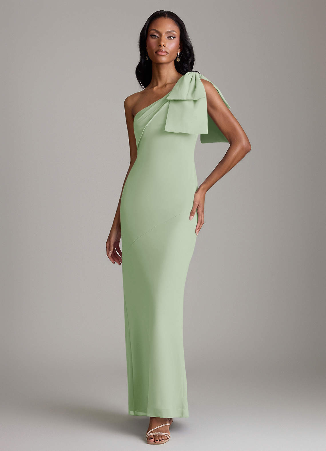 Dusty Sage Mermaid One Shoulder Chiffon Dress