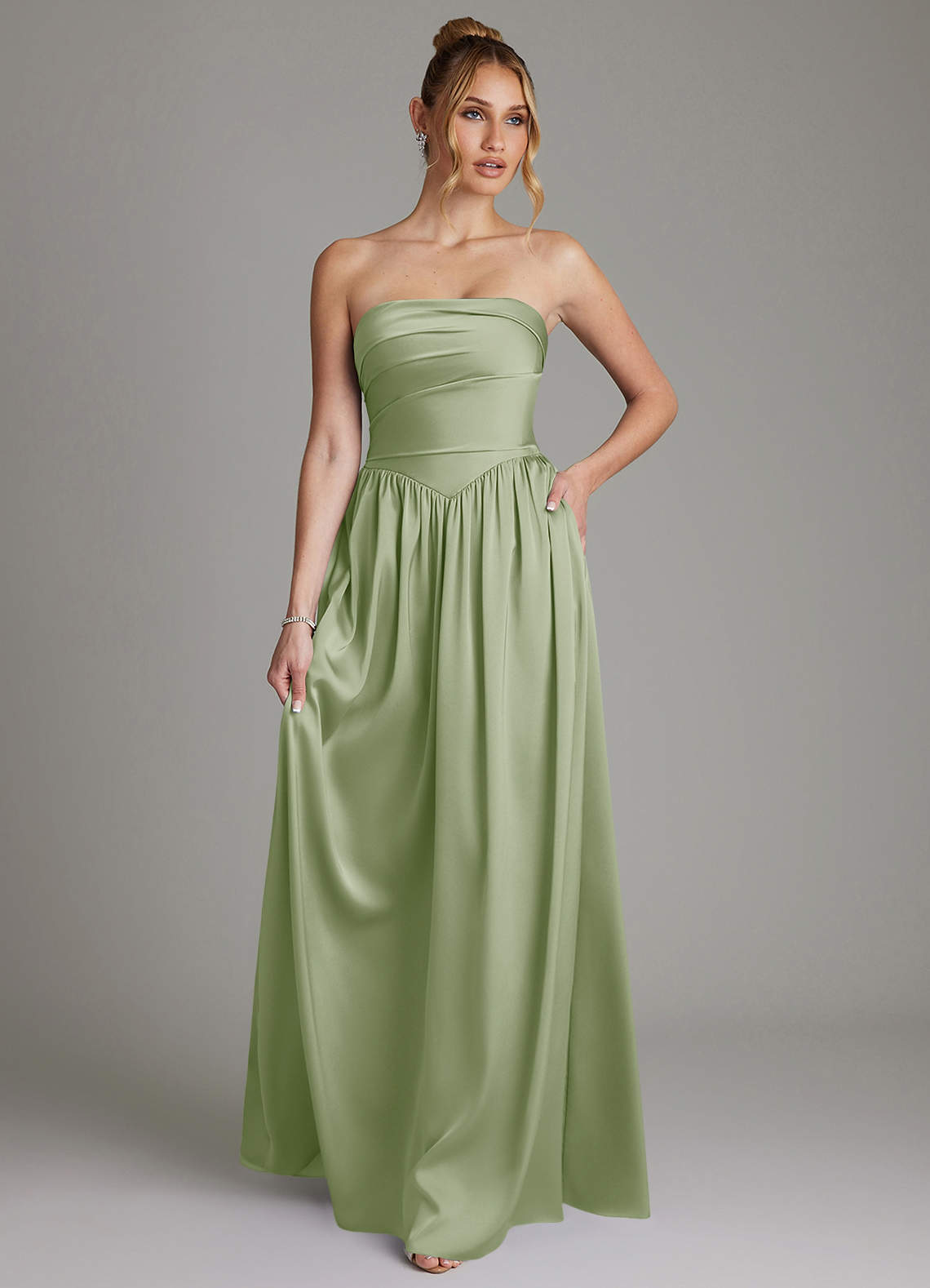Dusty Sage A-Line Strapless Stretch Satin Dress