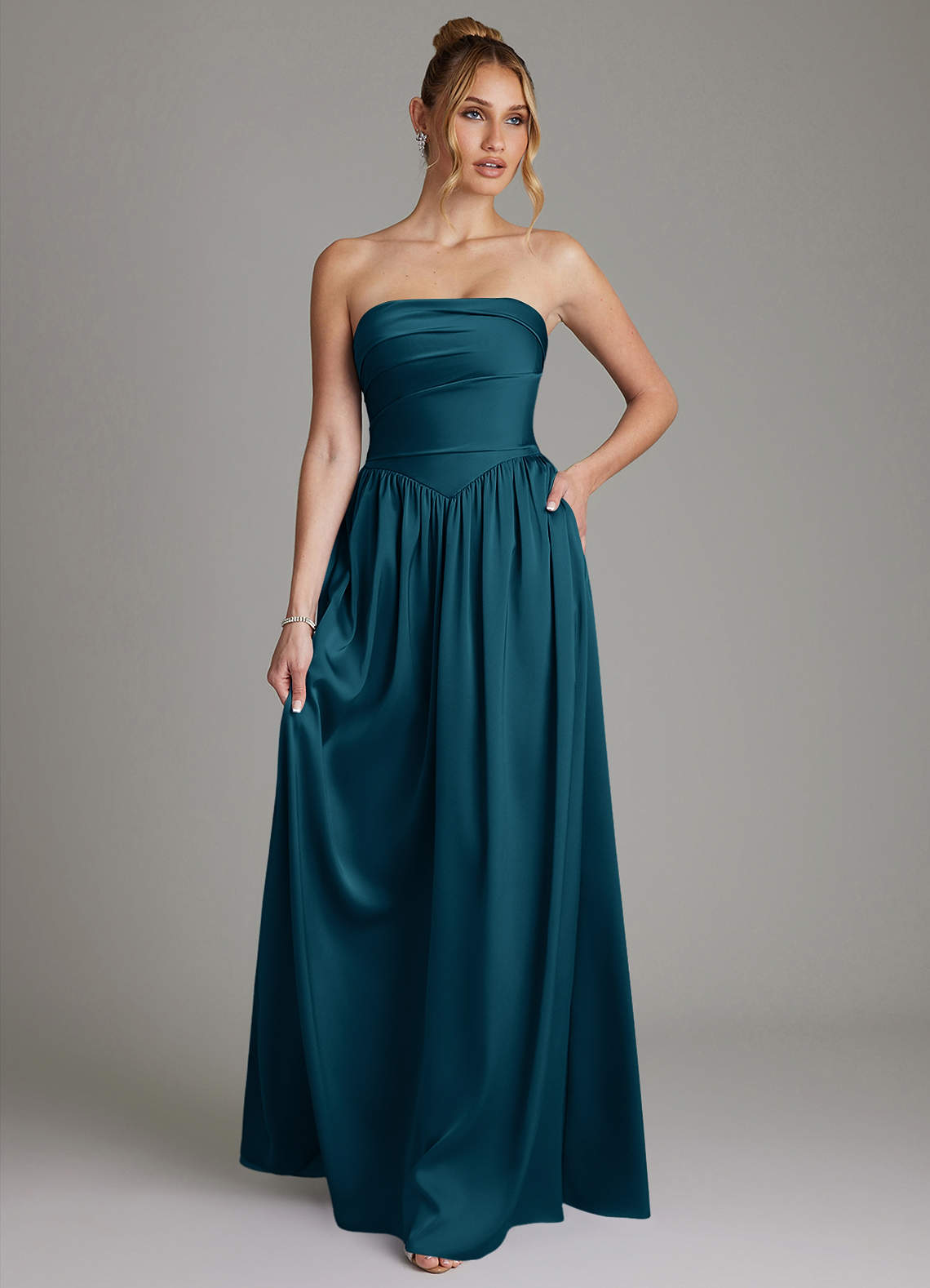 Ink Blue A-Line Strapless Stretch Satin Dress