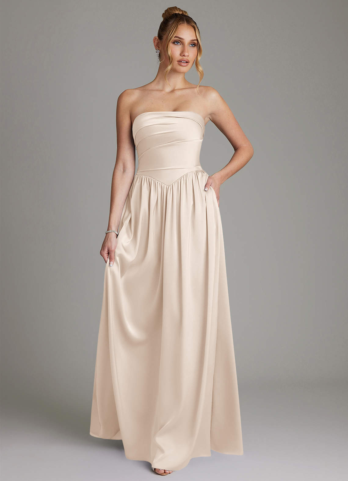 White Alabaster A-Line Strapless Stretch Satin Dress