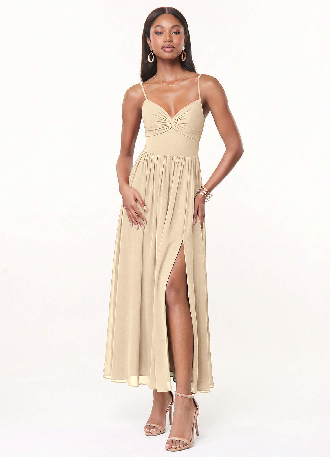 Champagne A-Line Pleated Chiffon Dress