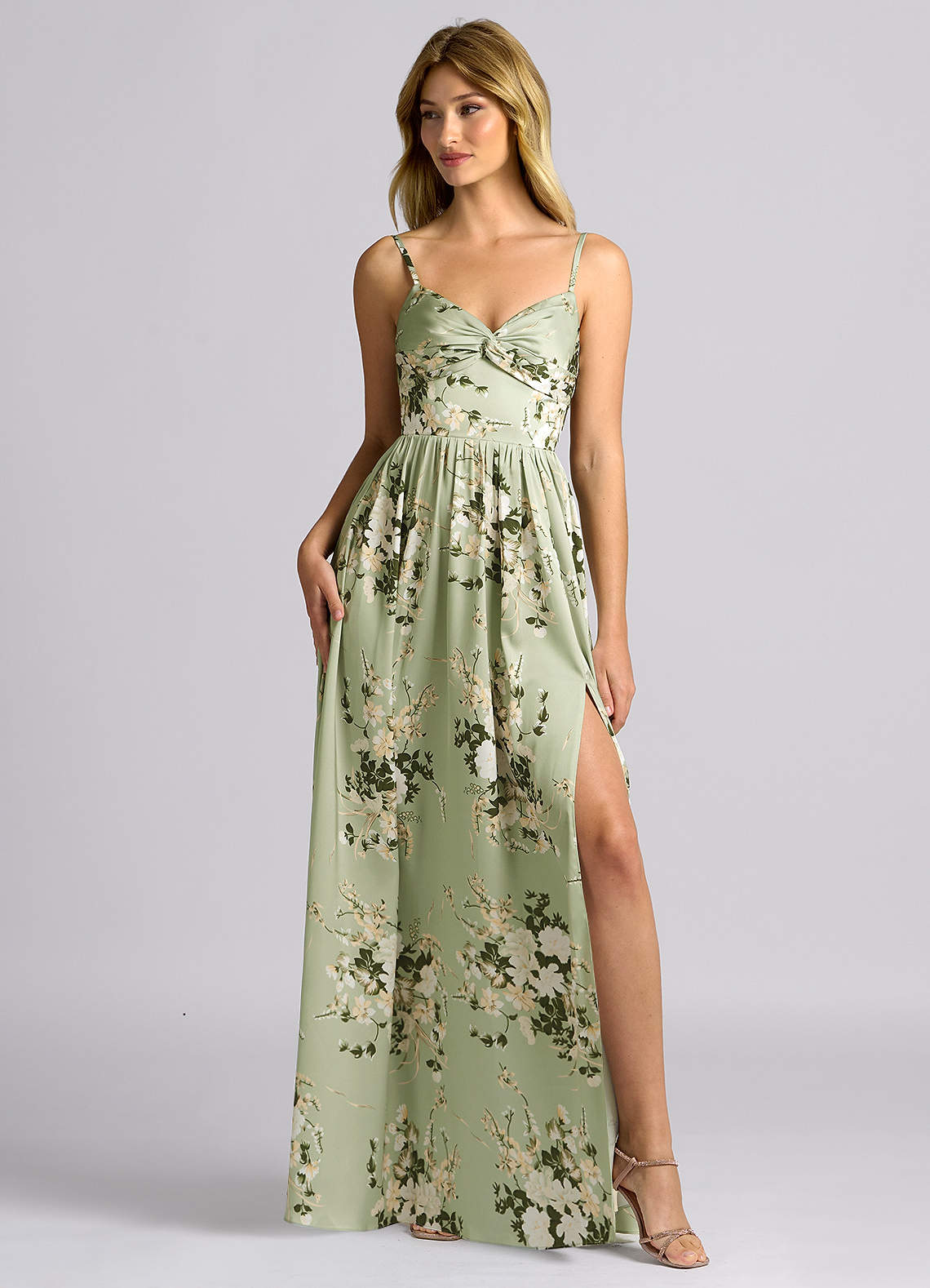 Floral Vines A-Line Pleated Stretch Satin Dress