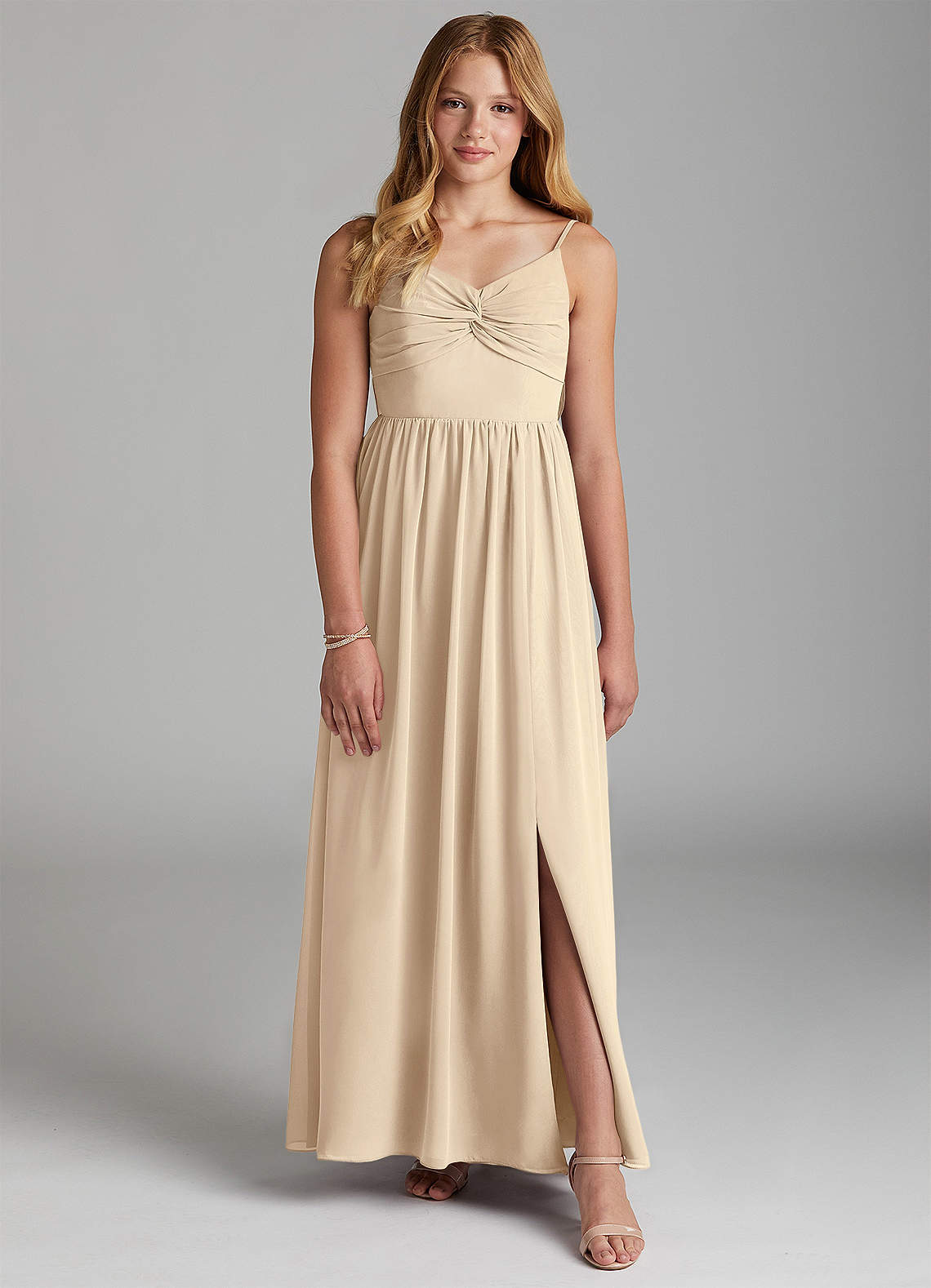 Champagne A-Line Chiffon Dress