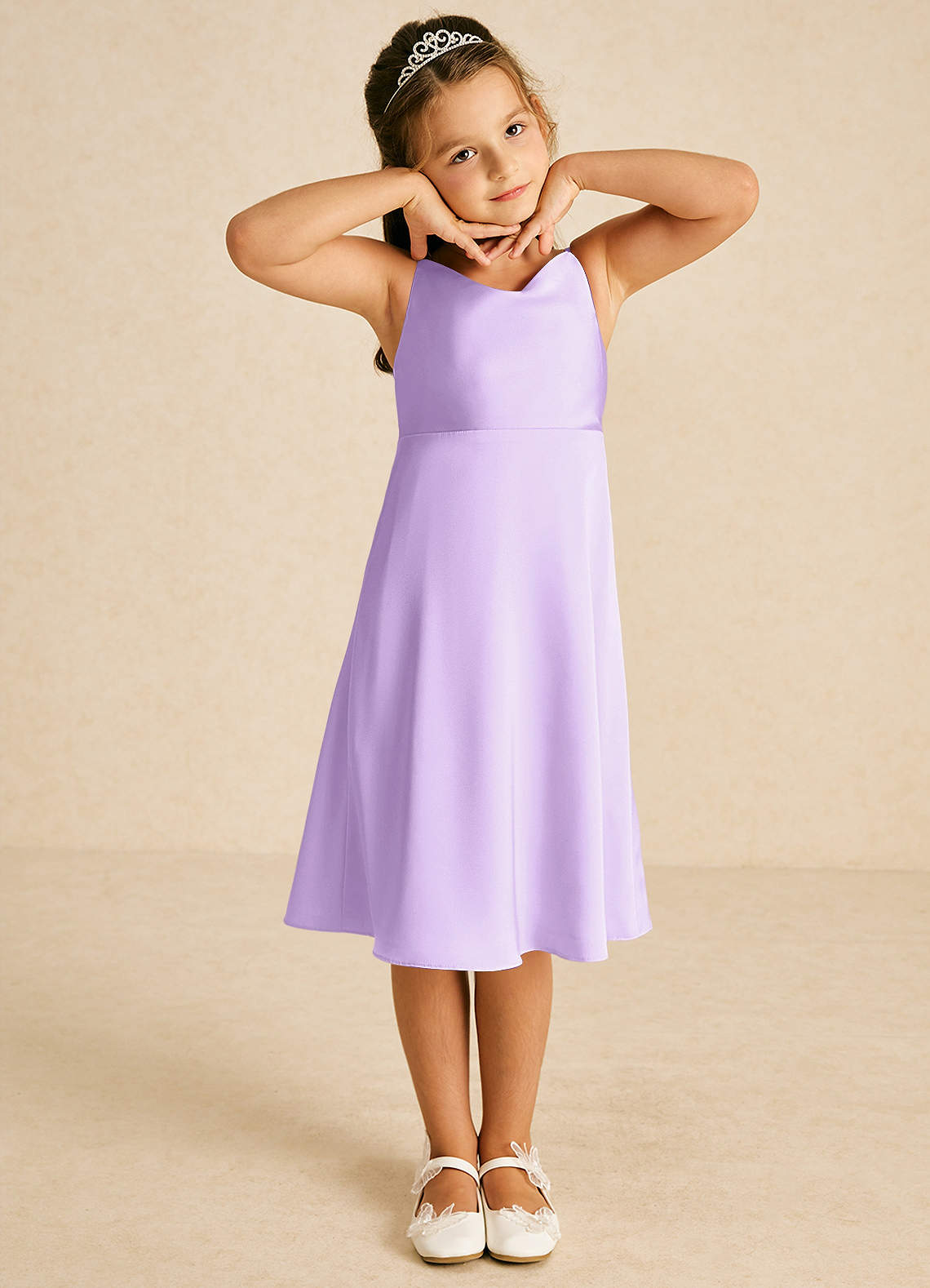 Lilac A-Line Spaghetti Strap Stretch Satin Dress