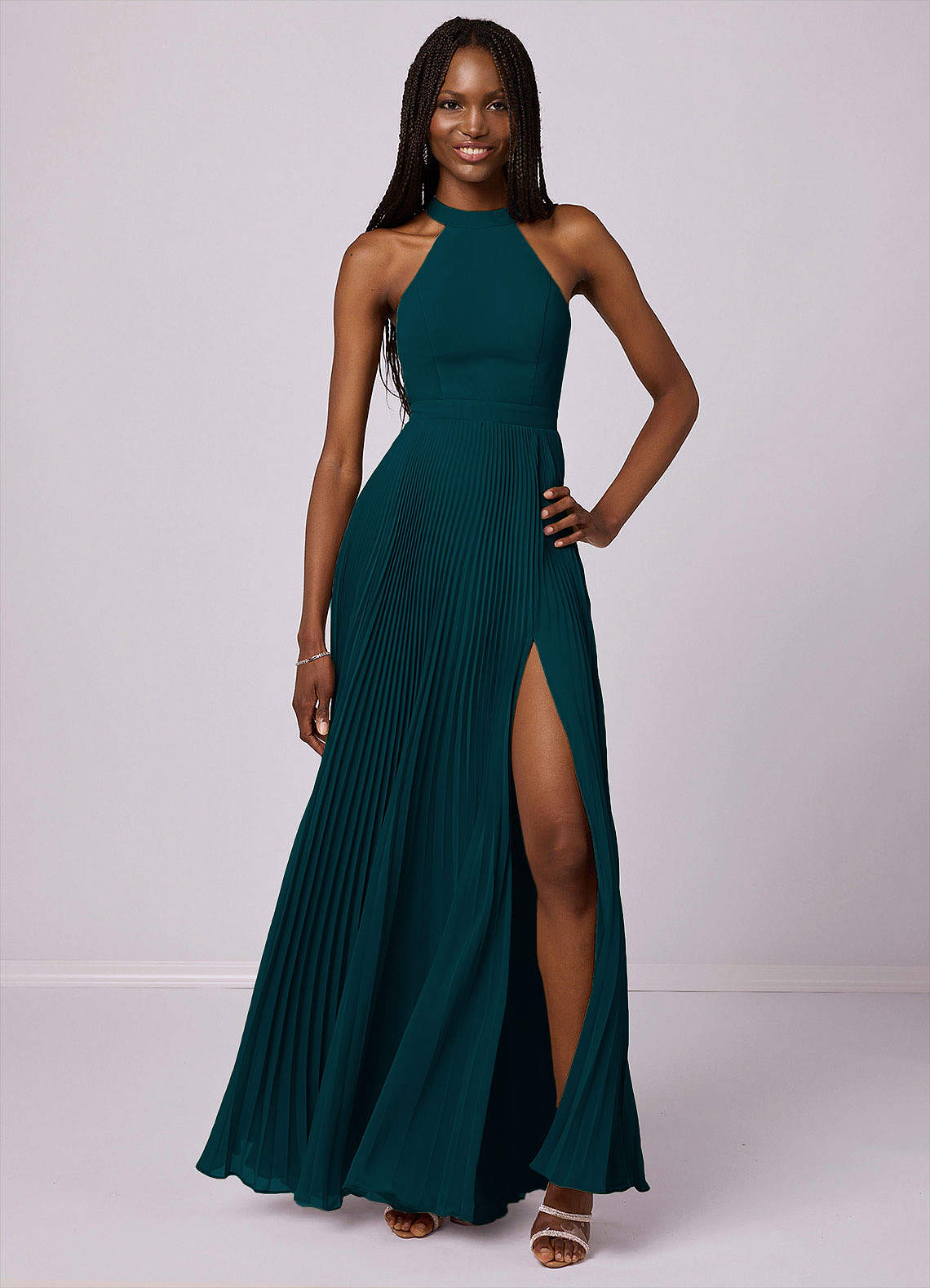 Pine A-Line Pleated Chiffon Dress Pine