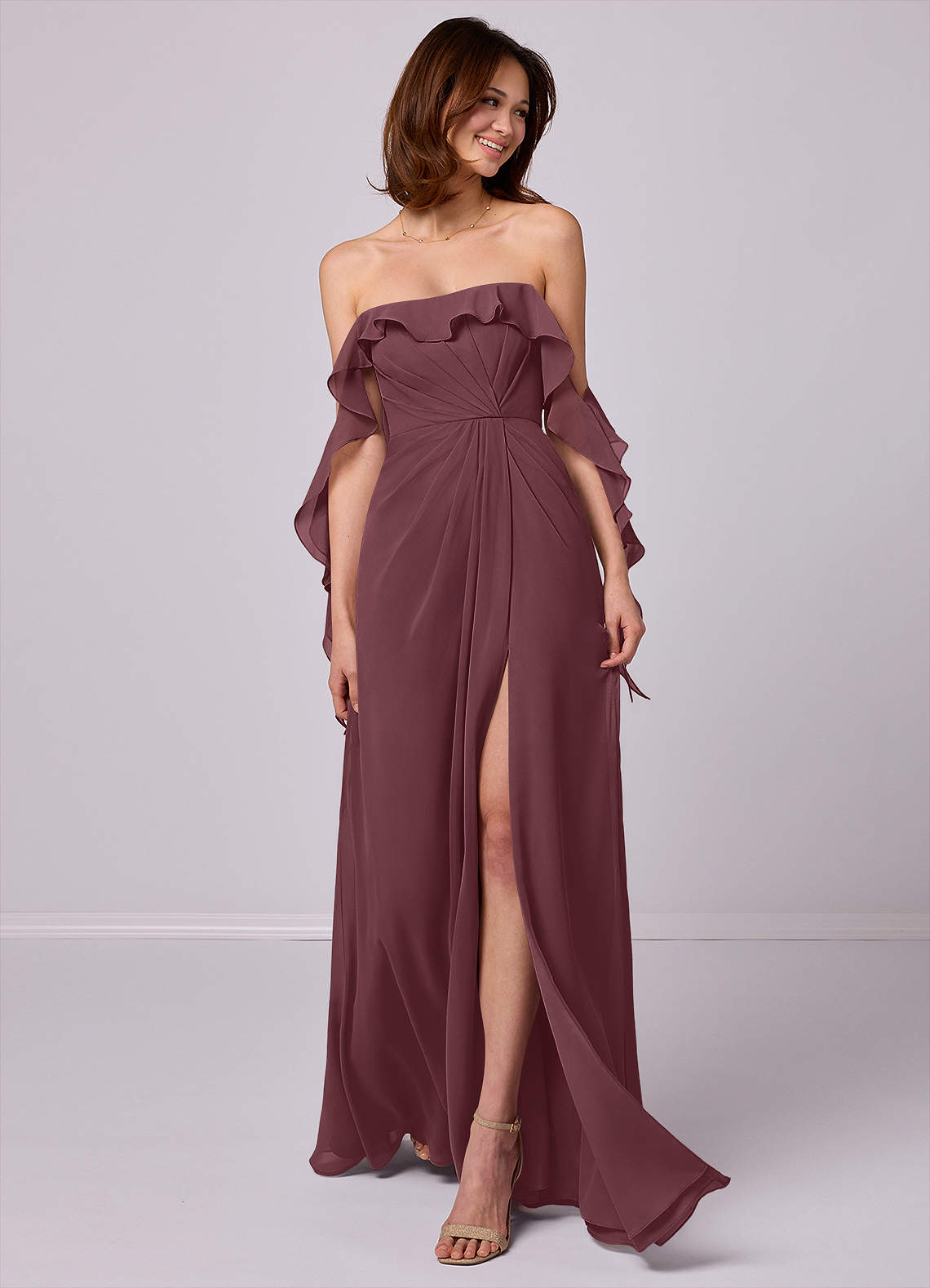 Sangria A-Line Off the Shoulder Chiffon Convertible Dress Sangria