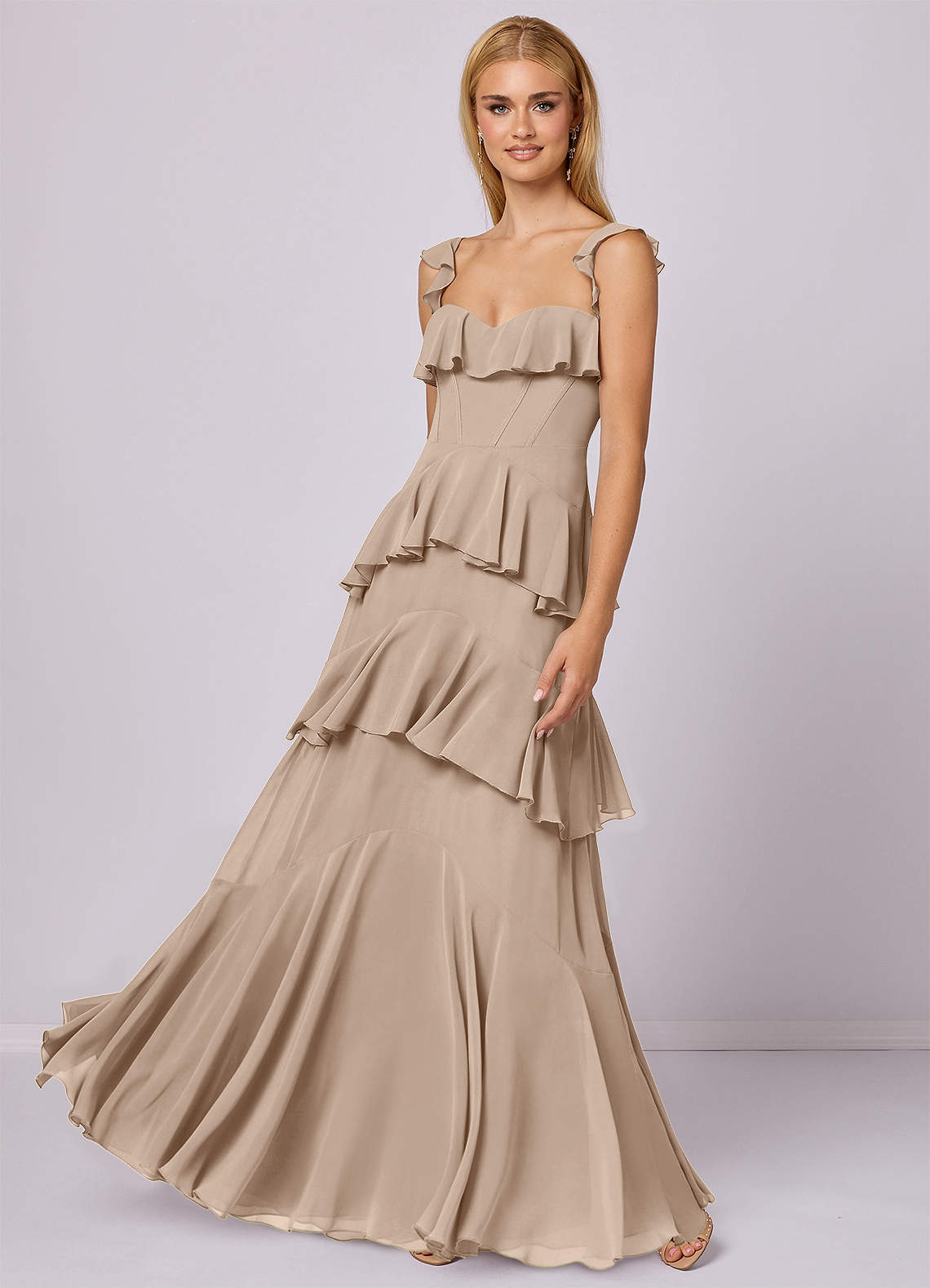 Taupe A-Line Sweetheart Neckline Chiffon Dress Taupe