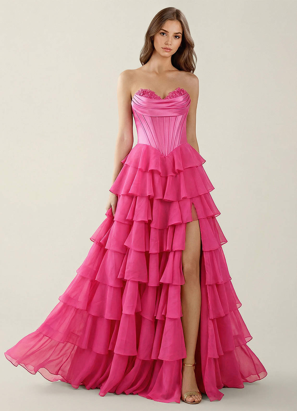 Bastet Fuchsia Ruffled A-line Prom Dress