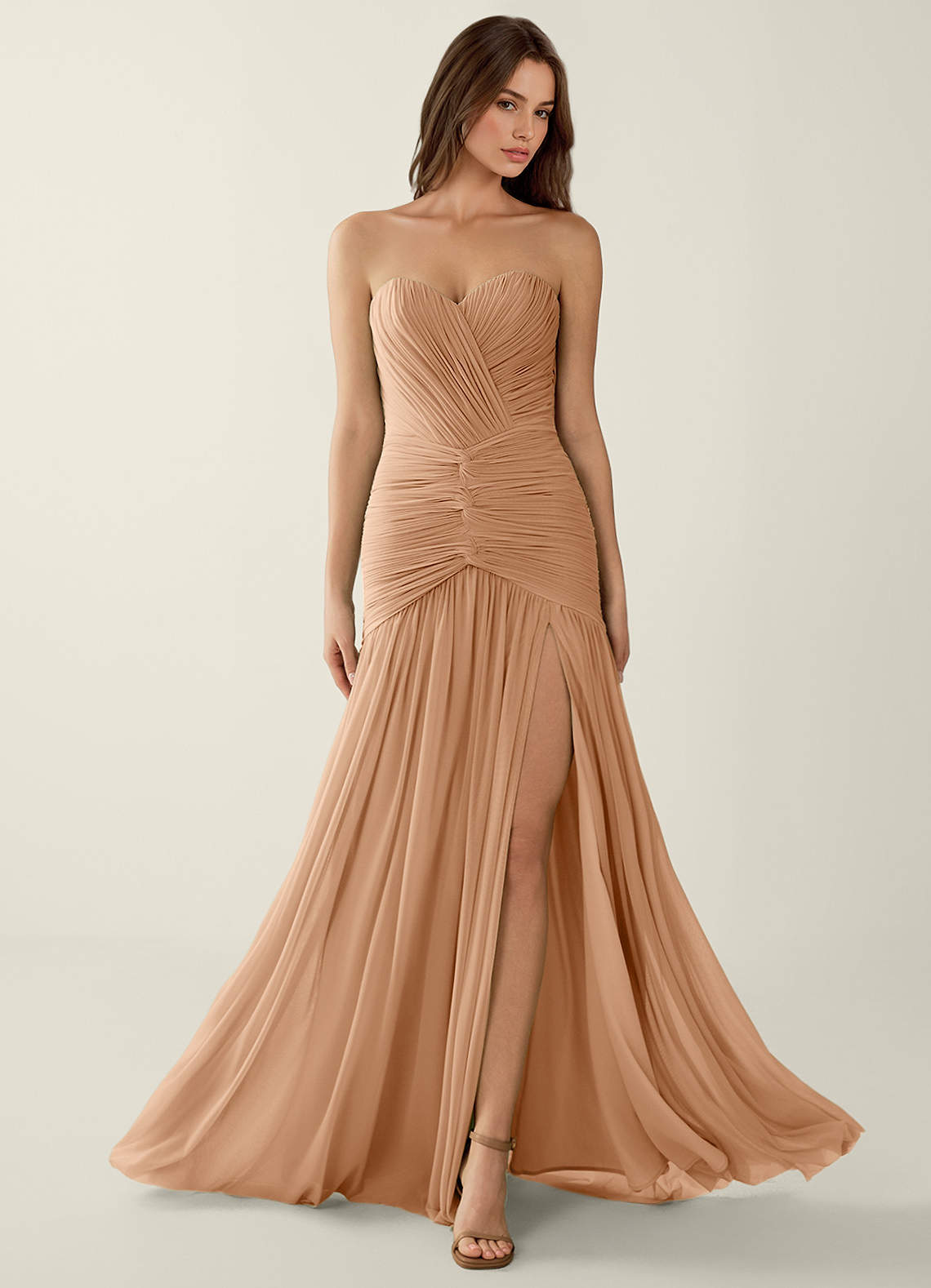 Blairen Nude Hand-ruching Technique Mesh Prom Dress