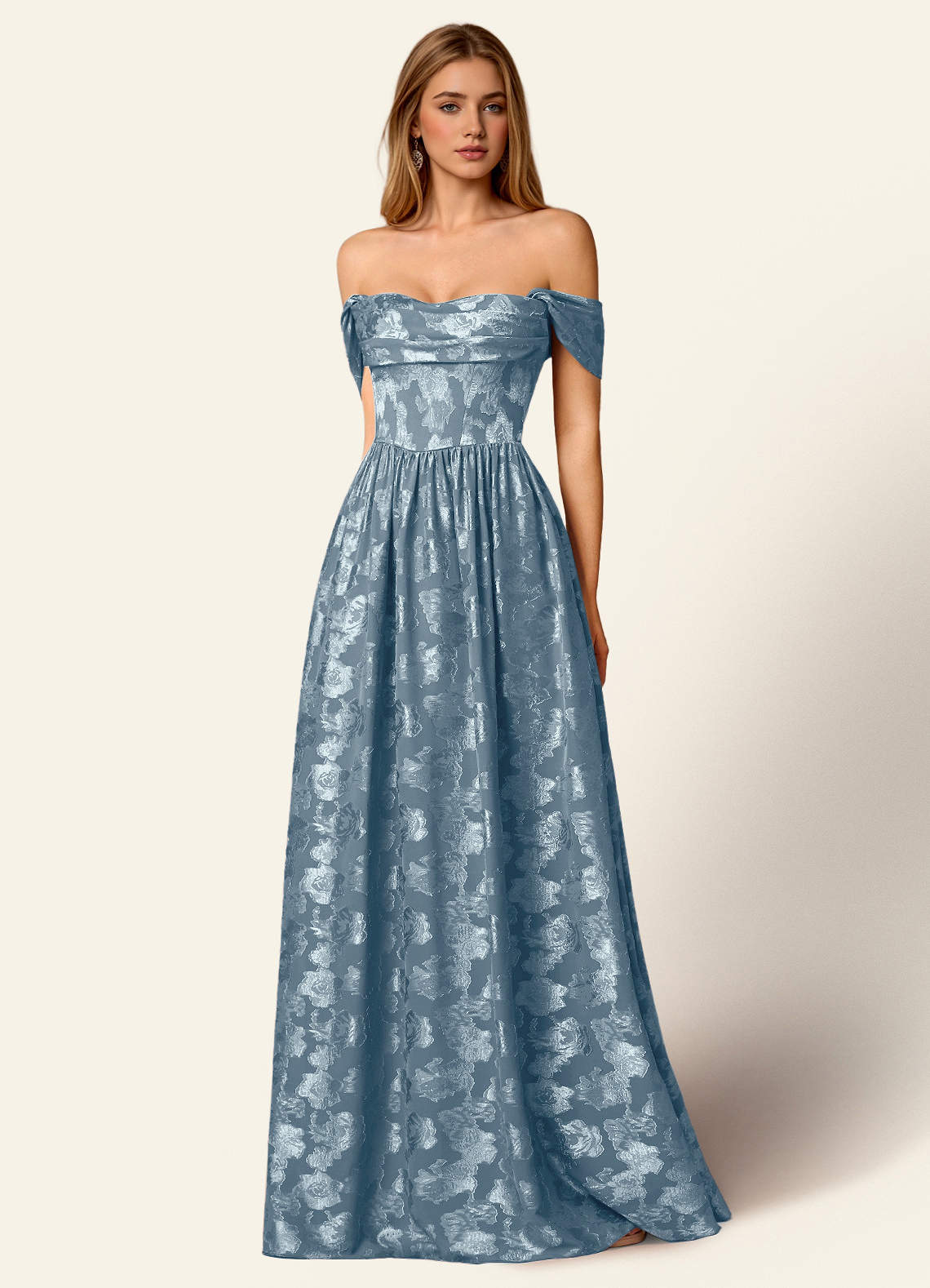 Briar Dusty Blue Off-Shoulder Pleated Prom Dress