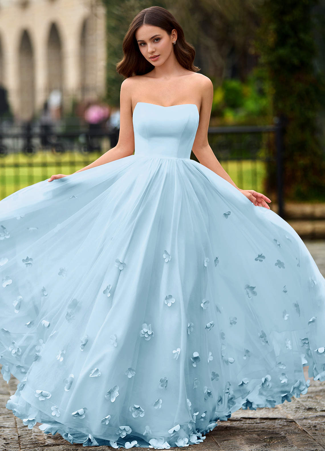 Calliope Sky Blue Flower Blossom Prom Dress