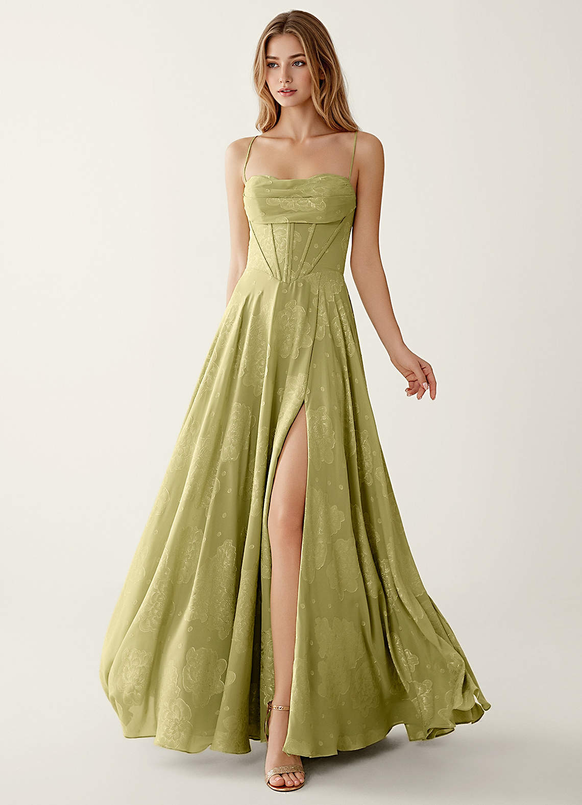 Clementigtle Celadon Embossed Clipped Jacquard Prom Dress