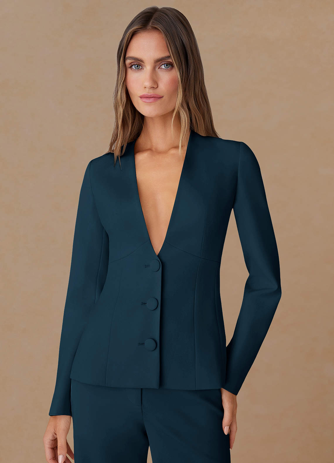 Elara Dark Navy Refined Weave Tailored Blazer