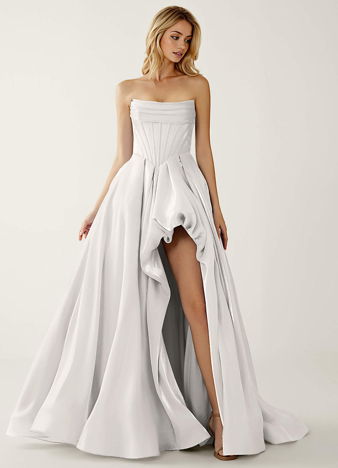 Emmanuelle Ivory Satin Faced Chiffon Ruffled A-Line Prom Dress