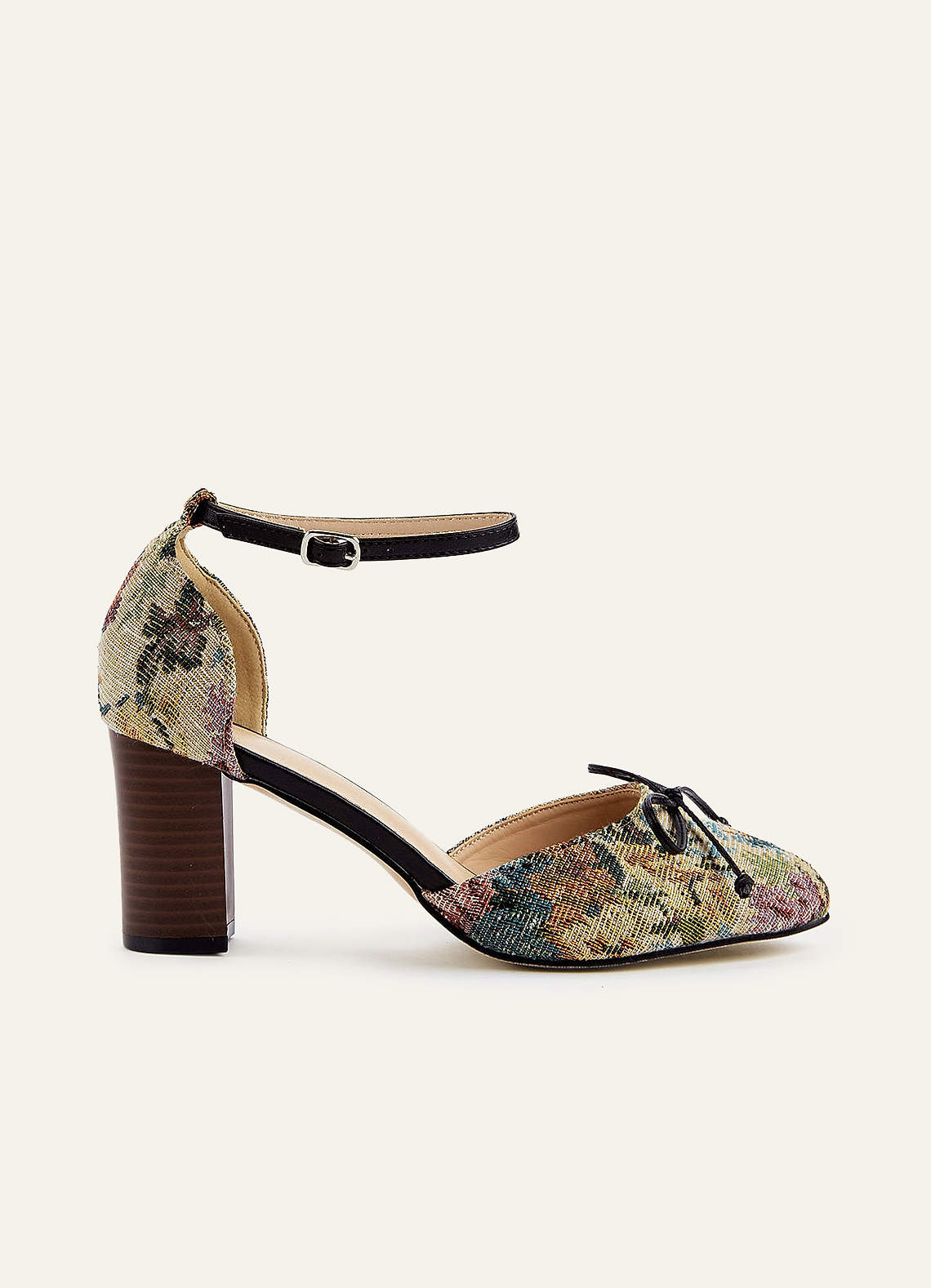 Floral Tapestry Ankle Strap Block Heels