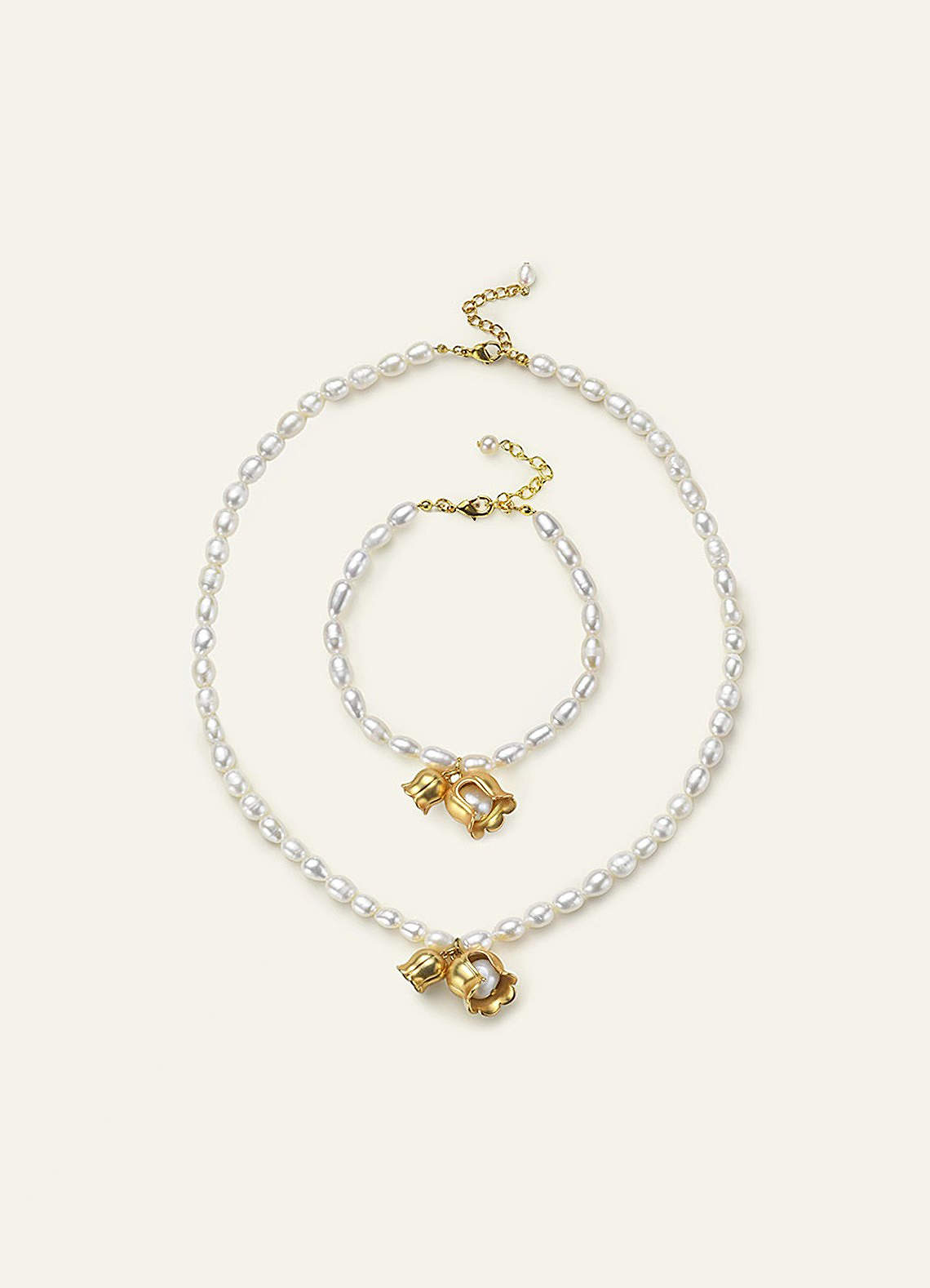 Genuine Freshwater Pearl Lily Of The Valley Jewelry Set